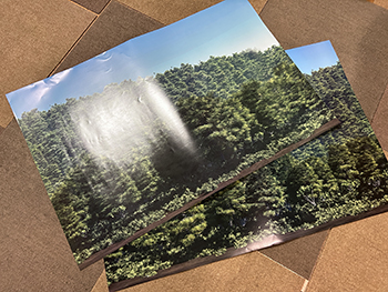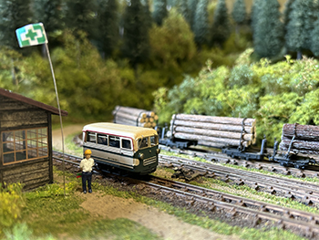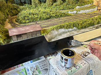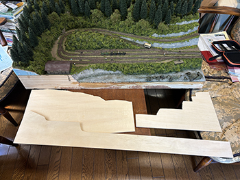 ![]() ![]() ![]() 車両を置いてみて、情景をシチュエーションしながら、とりあえず3体の人形を固定してみました(^_-)-☆。 「大鹿ジャンクション」では詰所の裏側で立ちションをしていた作業員を、試しに運材台車に立たせてみたら手の位置がドンピシャでした(^^♪。 ![]() いつものように新聞紙で型紙を作り、近所の木工屋さんにベニヤ板を持ち込み、ミシンカットの依頼をしてきました(^-^)。 出来上がりは今度の日曜日ということです。 ![]() 実は前作の「大鹿ジャンクション」で発生した問題なのですが、今までの背景写真では幅が足らず、大きな背景画が必要になりました。 そこで、大きなハレパネを買ってきて、自分で撮影した写真をA3にプリントアウトして並べて貼ってみたのですが、空の色調や明るさが揃わなかったり、貼り継いだ写真の連続性に無理が出たりして、結局は使い物になりませんでした。 あるお得意様から「箱庭技研」というところから大きな背景写真が出ているということを教えて頂きました。そこで900x600mmの背景写真を購入。 カレンダーのような紙に印刷されているものでなかなか良い感じだし、横に繋げれば1800mmの背景画が出来るようになっています。 これをそのまま使っても良いのですが、やはり何かで裏打ちしておいた方がシッカリして良いだろうと考えたものの、自分で綺麗に仕上げる自信もない。 そんな事から、今日「表具店(襖張りなどをするお店)」へ持って行って相談したのですが、和紙や壁紙だったら出来るけど洋紙はやったことがないと云われ断られてしまいました。 やっぱり腹を決めて1800mmのシナベニヤ板にスプレー糊で貼るか(両面テープでは絶対に上手くいかない)、暫くはこのまま使うかですね(^O^)。 出来上がった化粧板を引き取ってきたので、今朝は木工ボンドと小釘で固定。 ![]() ![]() 「大鹿ジャンクション」と同じ黒色に化粧板を塗り、乾いたところで画竜点睛にワーゲンプレートを貼って出来上がりです(^_-)-☆。 板を買ってきたのが6/17でしたから、約40日の工期でした。 |