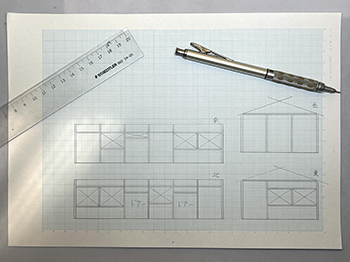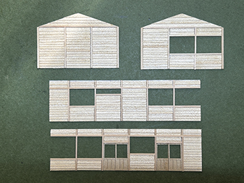 ![]() ここからはライケンが届かないと作業が進まないので、地面にテクスチャーペイントを撒くためにも、詰所を作ることにします(^-^)。 坊主岩停車場の詰所は遠望の写真しかなく、屋根は単純な切妻屋根とか、おおよその感じしか分かりません。 したがって普通の詰所だろうと推測して、大鹿ジャンクションの詰所を参考にしながら、設置条件に合う大きさで設計してみました(^-^)。 正面左側は休憩所、中央は簡単な台所、右側は物置という想定です。 昨夜のうちにボール紙を切り抜き細い柱を接着しておいたので、今朝は下見板を接着しました。 これを箱状に組んでいき、次は屋根板を作ります(^^♪。 ![]() 詰所を箱状に組んでいき、仮に設置場所に置いてみました(^^♪。 詰所の屋根は大鹿の詰所と同じように5mmピッチでラインを書いておいた所に6mm幅のコピー用紙を貼り付けて、四辺には1mm角棒を貼り付けて出来上がり、本体に接着。 ![]() これでコンクリート基礎の正確な寸法が出せるので、2mm厚バルサから切り出してボードに接着しました。 ライトグレーに塗れば地面にテクスチャーペイントを流し込める状況になりました(^^♪。 ![]() ウッドランドのスタティックグラスがもうじき無くなるので(もう20年近く前に買ったもの)、KATOのネットショップでまた買おうとしたら、同じものがもう売ってない(@_@。整品番号で調べてもダメでした。 そこで盛んに調べてみたら、聞きなれないメーカーものがあったので、試しにひとつ買ってみたら殆ど同様の(色具合も)でした(^_-)-☆。 もう少しこのメーカーの製品を見てみたら、細かい葉っぱや4cm位の灌木などもあったので、試しに一緒に買ってみました。 前者は結構イイ感じで、noch以外に少し色の変化を出すのに良い感じ(^-^)。 後者は塊になっていてほぐすのが大変そうですが、これまた変化をつけるのには良いかも知れません。 自分の定番だけではなく、たまには目をグルグル見まわしてみるのも良いですね(^O^)。 |