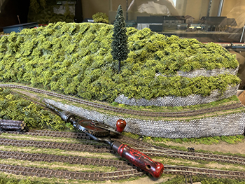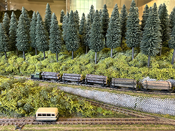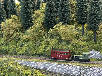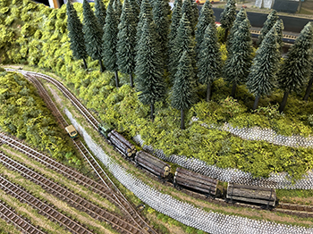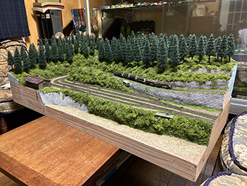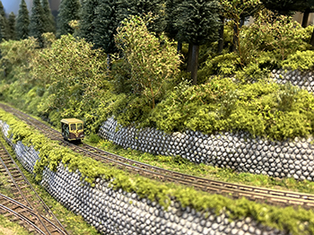 ![]() 順序が逆ですが(^O^)、桧の高さについてネットで調べてみました。 一般的な高さは20mから30mだそうで、高いものになると50mの場合もあるそうです。1/87に縮小してみると約23cmから34cm。 購入した杉の木?に幹を接ぎ木した今回の桧は手前に配置した一番高いものの高さは17cm。まだ6cmも低いことになります。 そもそも針葉樹というのは約3億年前から地球上に存在し、それが地中に埋もれてできたのが石炭で、広葉樹よりもずっと昔から存在していた植物。 それが光合成により適合した広葉樹によって生育域が狭められ、高山、寒冷地などの厳しい環境に追いやられたもの。 枝を左右に広げる広葉樹に対して、上へ上へと生長することにより光を求めた結果なので背が高いのも頷けます。 こういう写真を撮るとスケールが違うんじゃないか?と思われるかも知れませんが、実際に山へ行って見上げる針葉樹はホントに背が高いものです。 ということで、とりあえず1箱分の桧を仕上げて、右半分に植樹しました(*^^)v。 ウ〜ン、こういう時は至福の時間で、今までの苦労が吹っ飛びます(^^♪。 この感じだと、あと2箱分な感じですね。頑張んべ(^O^)。 ![]() スプレーのりが無くなったので、ホームセンターに買いに行き作業を再開。 2箱目の植林も完了(*^^)v。 あと1箱分は要らない感じですが、実際に大中小の木曽桧を山肌に置いてみないと、どれが良いかは分からないので、面倒がらずに頑張って作ってみます(^-^)。 さあ、もうひと息だ! ![]() 全山、木曽桧を植え終わりました(^^♪。全部で96本でした(^O^)。 今日は所用で長野市まで行ってきたのですが、中心部まで1時間半の道のり。 その殆どが犀川沿いの国道19号線で、運転しながら気になっていたのは沿道の木の生え方。針葉樹・広葉樹が入り乱れて雑然としているのです。 様々な広葉樹が茂っているので、その葉っぱの色も濃淡があり。 その雰囲気を少しでも出そうと、この後は広葉樹をこの桧の間に植えていこうと考えています(^_-)-☆。 ![]() 混葉樹林(^O^)が出来上がりました。 桧だけの時から比べると、少しは雑然としてリアルになったような気がします(^^♪。 ![]() 前からやろうやろうと思っていた助六へ向かう石積みに雑草を生えさせました(^^♪。 同じ作業の繰り返しで、いささか苦痛だった裏山の作業も一段落して、ようやく楽しい作業に入れました(^^♪。 大鹿ジャンクションと同じ手法で「安全看板」をサラッと工作(^_-)-☆。 |