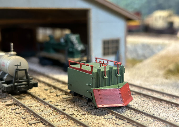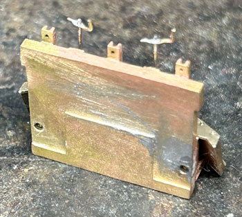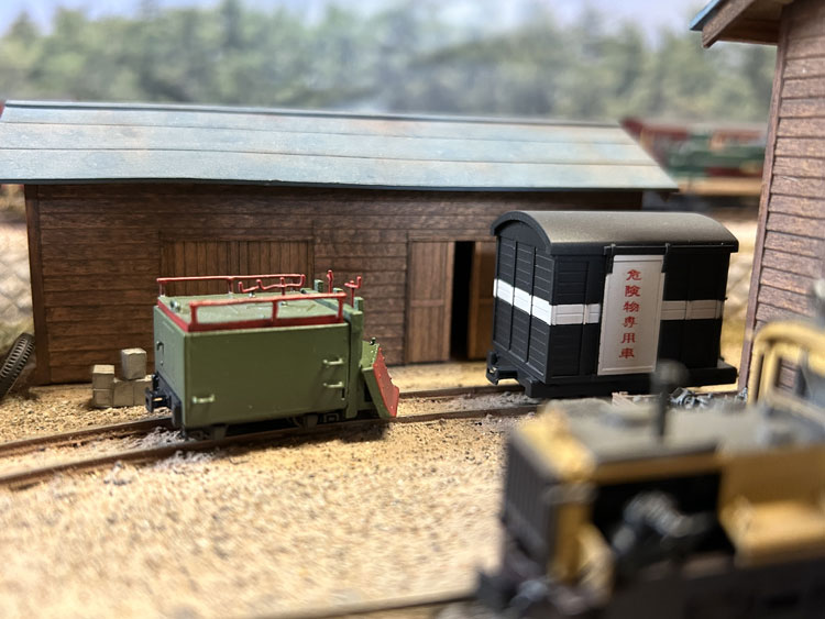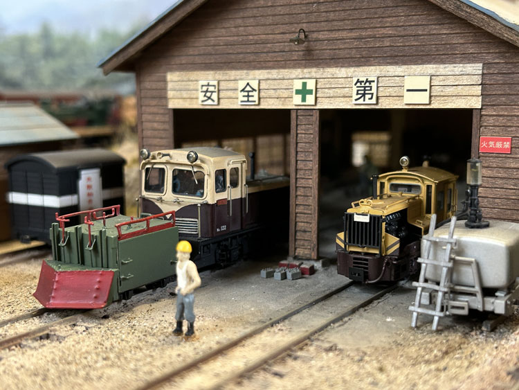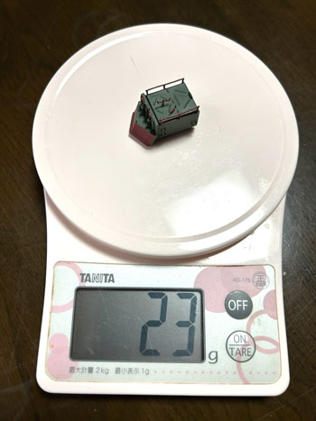 木曽のラッセル車 ![]() 小型で可愛らしいこのラッセル車は、ロータリー式を使うまでもない積雪の場合や、構内の除雪に使われていたようですが、なかなかどうして、小粒ながらピリリとした魅力があります。 こんな小さな車両ですが、当社は真面目に取り組み(^O^)、他の車両と並べても決して遜色のないディテールを誇っています。 そんな魅力あふれる「木曽のラッセル車」の楽しさを、この組立講座から感じ取って頂ければ幸いです。 第1回 1.まず妻板にアングルを半田付けしますが、上面から1mm下がった位置にアングルの上がくるようにします。 その後で妻板の板厚が見える方向で箱状に組み上げ、テスリやハンドルなどを半田付けします。 ![]() 2.テスリの歪みを修正しておいた上板には軸を差し込んで裏側とツライチになるように半田付けをしてから、コの字型のハンドルを中央部に、大きめのL字型のハンドルをもう一方の軸に半田付けします。 この上板を箱状に組んだボディーに差し込んでみて、塗装面を考慮してスッとはまるように確認しておきます。 ![]() 3.プロウの2本の足は短くカットしておき、枠板の裏側に出ないようにしておき瞬間接着剤で組み合わせます。 プロウに突き当たるように枠板の小穴に軸を差し込んで半田付けしてから、小さいL型ハンドルを半田付けします。 ![]() 4.このプロウユニットの裏側の下側両脇の部分を前妻板下部に合わせてゼリー状瞬間接着剤で止めて上まわりは出来上がりです。 上板は別に塗装をしますが、4個のハンドルは繊細ですから、塗装前の洗浄時には気を付けましょう。 ![]() 第2回 1.床板にエンドビームを1.4x2mmビスで止め、ウェイトを2個ゼリー状瞬間接着剤を併用しながら1.4x5mmビスで止めます。 ![]() 2.台枠に軸受を瞬間接着剤で接着します。 ![]() 第3回 1.塗装作業です。まずMWC-53 MWプライマーで下塗りをしてから、床板から下の部分をMWC-02 ディープブラックで、その他をMWC-01 グラスグリーンで塗ります。 プロウの前面やその上下装置のハンドルと軸(中間の支えの上の部分のみ)、上板も側面とテスリやハンドルを赤いエナメル塗料で塗ります。 ボディーと上板とはエポキシ系接着剤で止め、好みでMWC-09 フラットベースを加えたMWC-10 クリヤーで艶を整えたあと、MWC-17 ダークグレーで軽くウェザリングをします。 ![]() 2.塗装を終えたらボディーに床板を1.4x2mmビスで止め、車輪を組み込みながら台枠も1.4x2mmビスで止めます。 最後にブレーキシューを台枠の前後にエポキシ系接着剤で止めて出来上がりです。 ![]() 3.ふと「ラッセル車は何グラムあるんだろう?」と思い、体重を測ってみました(^O^)。 設計段階で前側にはロストワックスの塊のようなプロウが付くので、実物同様に車内にバランスウェイトを積まないとダメだなと思ってスペース的に可能なだけのウェイトを積んだのですが、体重は23グラムもありました(^^♪。 標準的な5tDLも測ってみたら32グラムでしたので、2軸貨車としてはなかなかの重さだと思います。 特に推進されるラッセル車ですから、車体が軽いとポイント部分などで浮いて脱線することも考えられますから、持ったときに「おや?」と思うほどの重量感があり、これは安心感につながります(^_-)-☆。 ![]() ![]() ![]() |