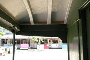 ![]() 最初の訪問先は神辺の保育園に保存されているホハ11の取材です。 もちろん事前にアポをとっての訪問だったのですが、休日にも拘らず園長先生が門の鍵を開けて待っていて下さいました。 御覧の通り、屋根の無い状況なのに状態は非常に良く、聞けば数年に一回はペンキを塗られているそうです。 ![]() ウチを出発したのは5月1日の午後2時。この時間に出発すれば渋滞も避けられるだろうと踏んだのですが、この思惑は的中して、途中、大津の辺りで10km程度の渋滞があったものの、その他は実に快適に走れました。 とはいえ、最初の宿とした福山には23時到着でしたから、9時間の長旅ということになります。 ![]() ![]() 翌朝の10時に園長さんと待ち合わせ。来意を改めて告げて、いよいよ取材の開始です。 井笠には客車が多数在籍していましたが、いくつかのグループに分類することが出来ます。 ホハ11〜12は同社オリジナルで大正11年製造。2個ペアーの窓が5組あるのが特徴で、元からシングルルーフです。 ![]() デッキの仕切り板上部の屋根Rとデッキ先の屋根Rとはこんなに違いますが、後者にも微妙にRが付けられています。 デッキ上部の屋根裏には梁がこのようにあります。 ![]() 台車は平型アーチバータイプ。軸箱守の形状に特徴がありますね。当社で発売したホハ2あたりとは全くスタイルが異なります。 クイーンポストも板細工の簡素なスタイルです。 採寸と撮影に1時間半ほど掛ったでしょうか、園長さんは御自宅に戻られてしまいましたが、保育園の隣に住まわれているお母様にお礼を述べて、次なる取材地・新市のゴルフ場に向かいました。 |