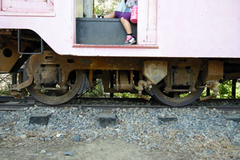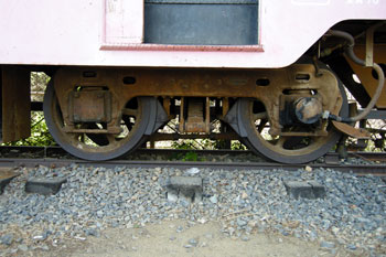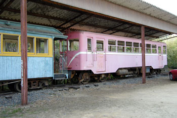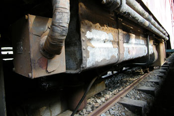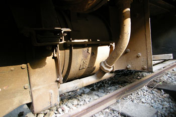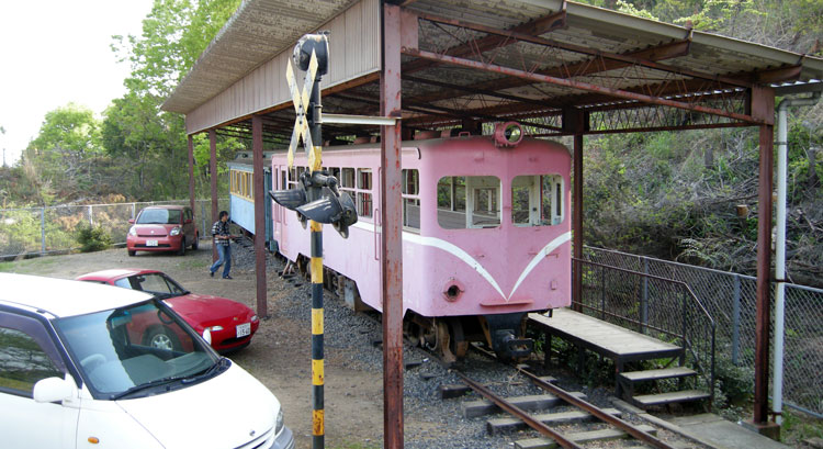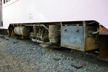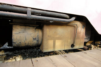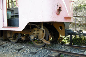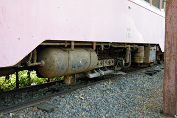![]() 今回の取材旅行で最後の訪問地となったのが、井原市郊外にある経ケ丸グリーンパークというキャンプ場です。 ここにはホジ101とホハ8が保存されていて、特にホジ101の存在は貴重です。 ホジ101について簡単に書いておきましょう。この車両は昭和30年に導入されたホジ1〜3の増備車で、ホジ101〜102として昭和36年に日車で製造されました(ホジ1〜2も日車製ですが、ホジ3のみは富士重工製)。 ホジ1〜3が125馬力だったのに対して、ホジ101〜102は150馬力にパワーアップされています。 外観的な違いは、前者の運転席前の窓が斜めに凹んだところにHゴムがあるのに対して、後者は正面窓が2枚とも同じ平面上にあること、運転席前に通風口が後者にはあること、ぐらいでしょうか。 また、ホジ1〜3はデビュー当時には黄+緑の気動車色だったのに対して、ホジ101〜102は最初から赤に白帯の新色でデビューしています。 因みにホジ3は井笠鉄道が廃止になってから下津井電鉄に譲渡され、同鉄道の部分廃止の撤去作業用に供される予定だったらしいのですが、結局はさして活躍もせずに車庫で惰眠を貪っていたそうです。 ![]() GW中とあってキャンプ場は家族連れで一杯。この保存されている場所は狭い駐車場にもなっていることから、写真を撮るにも苦労する有様でした。 しかも採寸など始めると、何やってんだあのオヤジは?といった好奇の眼差しをビシビシと背中に感じ、周りでは躾の悪いガキがビャービャー泣きわめき、しかも藪蚊の大群に襲われるわで、散々な目に遭いましたが、ここは仕事。仕事第一と割り切って、ひたすら任務に励んだのでした(@_@;)。 ![]() ここでは特徴的な下まわりを中心に見ていきましょう。動力台車側は偏心台車です。ホイールベースは850+650mmとなっていて、一見同じように見えるホジ7など用の1000+650mmより僅かに小振りになっています。 また軸箱の形状や小穴があること等も異なり、駆動軸側にはごつい砂箱も備わっています。因みにこの砂箱は左右で形が違うように見えますが、寸法を測りながら仔細に見ていくと、取り付けの向きが90度違うだけということが判りました。 ![]() 狭い床下にビッシリという感じで並べられた床下機器。ホジ7などのような旧型車と違って、エンジンを吊っている枠はありません。 ![]() こちらは非動力側台車でホイールベースは1300mm。向かって右側の軸箱に取り付けられているのはスピードメーター検知器です。 この写真を見てもお判りのように、従来のHOナローだったらKDカプラーを取り付けなければならず、そのためにカプラー周りはかなり違った印象にならざるを得なかったのですが、当社独自の「朝顔カプラーシステム」を使うことによって、実車通りの外観を損ねることなく再現できるので、イメージはグッと良くなるでしょう。 ![]() 反対側の床下機器の採寸や撮影には苦労しました。というのは木製のホームがあるからで、藪蚊と闘うだけでなく、脇腹の筋肉を攣りながらもアクロバチックな姿勢を強要されつつ狭い空間に潜り込み、至近距離からワイドコンバーターを着けたデジカメでの撮影となりました。(^^ゞ。 ブレーキシリンダーの隣には大きなラジエターが備わり、エンジンのドライブシャフトと直結したファンが冷却するような仕組みになっています。また、左右側面にはS字型になったダクトの開口部があります。 ![]() 扁平な形をした燃料タンク。その隣には何とウエバスト式温風暖房機までもが備わっています。 ![]() 屋根のR具合を見るのには正面から望遠レンズで撮るのが良いのですが、シチュエーション的条件からこれが精一杯。見事なまでに総ての窓ガラスは割られ、しかもHゴムまで総て外されてしまっていました。車内で駆け回るガキで車体は左右にユラユラと揺れていました(^O^)。 コストの点で再現できるかどうか判りませんが、簡単ながらも運転機器も模型で再現できたらイイですね(^^♪。 |