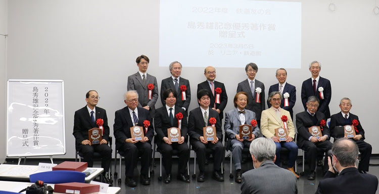 ![]() 書籍「立山砂防軌道」が光栄なことに「鉄道友の会 2022年 島 秀雄記念優秀著作賞」を頂戴することになり、令和3年3月5日の授賞式に行って参りました。 この賞は「毎年1回、鉄道分野に関する優れた著作物または著作物に関わる功績を選定し、鉄道および鉄道文化の発展に寄与することを目的として、2008年に新設された賞です。賞の名称は、鉄道友の会初代会長で東海道新幹線の実現に功績のあった島 秀雄氏(1901〜1998)が、会の発展に尽くされた功績を永久に記念し、後進にとって励みとなる賞」ということで、我々鉄道を愛する人々にとって大変光栄な賞で、そのような賞を受賞出来たことは、長年この道ひと筋で仕事をしてきて良かったなと感謝しております。 ![]() ![]() 受賞会場は名古屋ということですので、久しぶりに「特急しなの」の旅。この特急に乗るのは約20年ぶりです。 朝は手が悴んでしまうほど寒かったのですが、暖かい名古屋の事を考えてダウンは着ませんでした(^^)。 名勝・寝覚めの床などを眺めたりして2時間10分の旅を楽しみました(^^♪。 ![]() ![]() 会場はJR東海の「リニア・鉄道館」。 ここには以前「佐久間レールパーク」などに展示していた車両が奇麗に補修されて展示されています。 高速レコードホルダーのC62 18は大昔に呉線でボクは見ているだけに、懐かしさもひとしお(*^^)v。 ![]() ![]() 受賞にあたりボクは挨拶で「著者と編集者とは農家と料理人のようなもの」と表現させて頂きました。 いかに腕の立つ料理人でも、素材が優れていなければ美味しい料理は出来ない訳で、ボクは青森さんの素晴らしい写真と原稿をお預かりして、ほんの少しだけ味付けをしただけで、出来るだけ薄味で素材の良さを生かすよう心掛けました、と御挨拶させて頂きました。 受賞した「立山砂防軌道」に続いて、「奇天烈トロッコ」も密かに受賞しないかな?と願っておりますが、それは欲張りというものでしょう(^O^)。 ![]() ![]() 授賞式の後は館内の見学をさせて頂いたのですが、一般公開されていない車両の中まで入らせて頂き、係りの方の説明で珍しいものを見させて頂きました。 集団行動の苦手なボクと青森さんはチョットだけ抜け出して、館内の案内嬢に頼んで記念写真を撮って頂きました(^^♪。 ![]() ![]() 昼食に本当だったら「味噌煮込みうどん」を食べようと思っていたのですがバタバタして食べられず、夕食も「みそかつ弁当」で(^^ゞ。 もっとバーンとしたトンカツが乗っていると予想したのですが、それに反して衣で太らせたエビフリャ〜と小さなトンカツが(^O^)。 「特急しなの」に乗り、周りに匂いをプンプンさせながら美味しく頂きました。 松本駅のホームに降り立ったら冷気がキーンと寒く感じられ、振り出しの穂高駅で写真を撮り、帰宅して暖かいお風呂に入って人心地つきました(^_-)。 まず、このような名誉ある賞などは今後は頂けないでしょうから、その晩は良い夢を見られました(^_-)-☆。 ![]() ![]() 早速事務所に賞状を掲げさせて頂き、ガラスケースの中には盾を飾らせて頂きました。 |