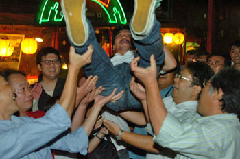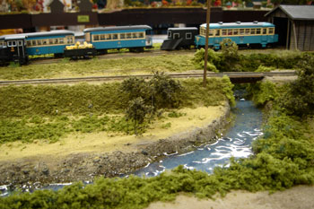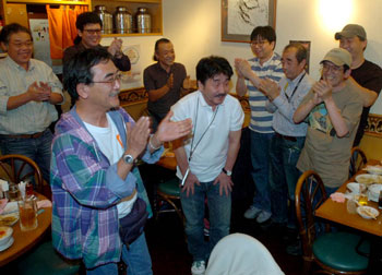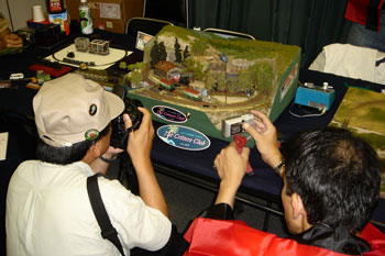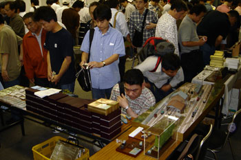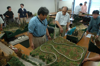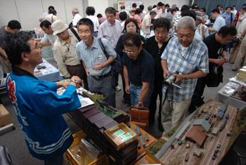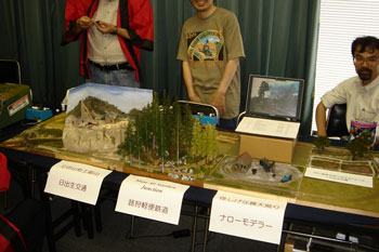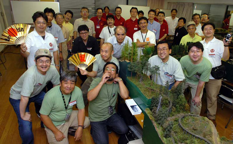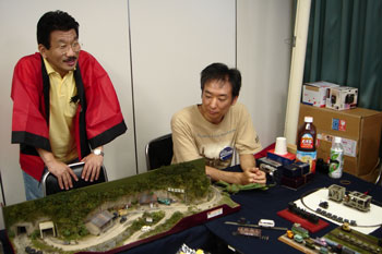 ![]() 穂高を出たのは4時45分。まだ夜明け前です。夜が明けたのは小淵沢のあたりでした。う〜ん、眠たい・・・。 ![]() いつも運転会のときにはボクのクルマで上京するKMCの権兵衛さんとKBMCの矢島さん。今回はボクのクルマは茶箱で一杯なので権兵衛さんのクルマも出動しての信州ボルボ隊。談合坂SAで我々のお腹とクルマに燃料補給です(^^;)。会場に到着は予定通りちょうど8時。ところが、夜明けを待ちきれなかった多くの会員たちは、既に会場セッティングを開始していました。 ![]() 今回は2級線の再現に限定したこともあって、KMCのコーナーでは新作がぞろり。しかも殆どのモジュールはコード40番の手打ち!!気合が入ってます。しまし、接合作業はもう手馴れたもの。 ![]() こちらKBMCも沼尻の再現に限定。春に現地取材を敢行したこともあって、かなり気合が入っています。ラーメン屋の岡持ちみたいなアルミケースは矢島さんのオリジナル。「僕にも作って!」と会員たちからオーダーが殺到していました。何せ彼は本職ですから(^^ゞ。モジュール製作に徹夜続きの松賢さん。会場でも何やら工作の仕上げをしていました。 ![]() こちらモデルワーゲンも準備中です。持ち込んだジオラマは「田島停車場」と「デッキガーダーのある風景」の2個。やっぱ、情景の上に置いた車輌は、生き生きとして見えますからね。会場の外では入場券が売られ、開場を待つお客さんが並んで待ってくれています。 ![]() 待ちきれないお客さんが列をなしていたので、予定の11時よりも15分早く開場。早速KMCのコーナーにはカメラを持ったお客様が、撮影の順番待ちまでするように取り巻いていました。いつもはHPでしか見られないモジュールや車輌が快調に走る様は、新鮮に映ったのではないでしょうか。 ![]() ティンバーを組んだレールの上を、憧れの5tDLの続行運転!!DCCならではの楽しみですね。お馴染みの「KMC林鉄人形」もこのように情景の中で見ると、生き生きとして見えます。 ![]() 木立の中を細〜いレールが縫うように敷かれた光景や、伐採線へ伸びる助六分岐点の光景などなど。見る角度によって印象が変る楽しさもあって、いつまで見ていても飽きさせません。 ![]() KBMCの方も軽便好きなお客様でごった返しの状態。実質的に初めての公開運転会でしたが、度重なる運転会の成果あって、次第に運転の調子も上がっていました。 ![]() 何気ないこんな風景が軽便モジュールの魅力ですよね。いかにも山の木曽に対して、町の軽便。その対象が実に面白いコンビネーションを醸し出していました。 ![]() 今回は有志メンバーによって「沼プロ」なるものが組織され、協同で沼尻駅の再現に取り組みました。そうです、あのデルタ線のある光景の再現です。右の消防署のある光景は服部さんの作品。 ![]() 会場には遥々沼尻から駆けつけてくれた「なかさん」の姿も。春の取材旅行では大変お世話になりました。新井清彦さんと御一緒されてとっても楽しそう。また、盛んにカメラを構えて、目を輝かせながらモジュールを撮影されていました。 ![]() こちらは出展されていたナローファンのコーナーです。新井さんはスクラッチビルドされたニチユのバテロコをご披露。これが実に快調に走り、しかも実物同様に運転席の部分が畳めるようになってたのには脱帽。 ![]() お隣りの眞崎さんはウチのホイットコムの台枠を利用して「紀ノ川堤防脇で発見されたホイットコム」をスクラッチビルド。実は製作途中も写真で拝見はしていたのですが、出来上がって目の当たりにするのは初めて。いや〜、凄い!この小ささでモーターが全く見えないのですから。 ![]() 他にも素晴らしいミニレイアウトたちが展示&運転されていましたよ。小さなスペースがあればレイアウトさえも楽しめるのがナローの良いところ。 ![]() さてこちらは当社のブース。左は開場前で準備中。今回はこんな感じです。もりこーも祭りの法被を着て張り切っています。 ![]() 持ち込んだジオラマには熱い視線が!お父さんが息子さんにナローの魅力を伝授中?将来のお得意様ですね。 ![]() 会場で見つけた面白いもの。1.KBMCのメンバーはお揃いで「軽便モズール倶楽部」のポロシャツを着ていました。沼尻的に訛っていますね。2.南部縦貫レールバス保存会の関さんが下さった金太郎あめ。どこを切ってもレールバスです!3.沼尻から来て下さった「なかさん」は、制帽や切符など貴重な品を展示してくれました。 ![]() お祭りが終わると楽しい打ち上げ会です。例によって万歳オトコ・もりこーの万歳三唱と、昔とった杵柄の大声を張り上げてのエールのあと、この祭りの立役者・シェフこと畑中さんの胴上げです。彼の情熱なくして、この祭りは在りえません。素晴らしいモデラーです。 ![]() 素晴らしきKMCとKBMCの面々。彼等の情熱無くしても、このイベントは成功しませんでした。前回の入場者数を大幅に上回る約800名の御来場を頂いたのですから。たった一日で、しかもナローゲージというジ