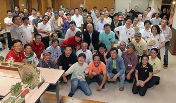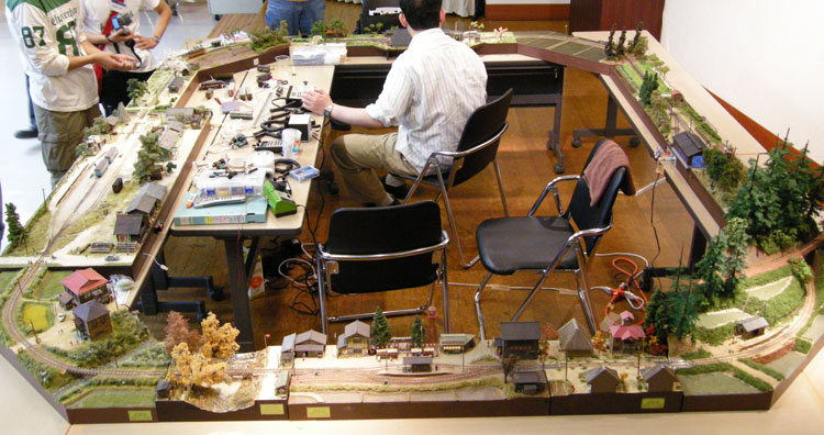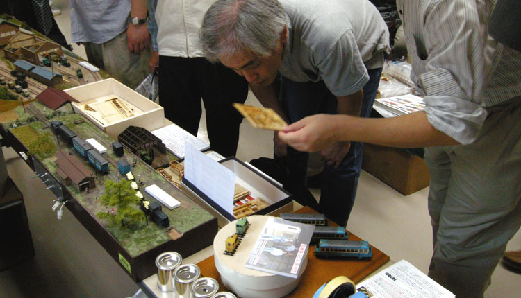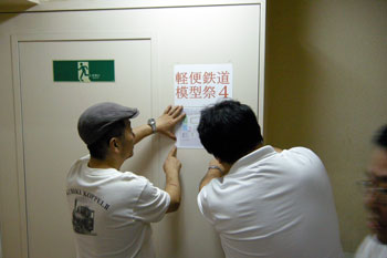![]() 今年で4回目となるお祭り。去年の話では「来年はお休みで、次回は来年で〜す」というお話でしたが、ファンの方々の熱望により開催されたという曰くつきの今回。 その熱望度が窺われるような熱気の10月5日8時間となりました。 KMCとKBMCという二つのモジュール倶楽部の公開運転会、ナローゲージ愛好家による御自慢の作品展示、そしてナローに力を入れているメーカー各社のブースと、ナローファンにとっては夢のようなお祭りを、もりこーの視点で御紹介致しましょう。 タイトル写真はクラブ参加のレイアウトで、なかなかイイ感じの石灰運搬軌道でした。当社製の酒井製5tDLも石灰軌道風にアレンジすると、イメージが変わってイイ感じですね! こういう自由な発想、ボクは大好きです!! ![]() 前日の午後5時。当社の駐車場にて。ホントならば前夜祭(ありていに云えば飲み会)に参加するつもりだったのですが、加藤製3tDLの準備でとてもそれどころではなく、この時間になってようやく荷物を積み終わった状態です。着替えなどを用意して出発する6時頃には、北アルプスに秋の陽が沈んでしまいました(^^ゞ。 ![]() 近くのホテルに泊まり、翌朝一番、8時に到着した状態です。まだひと気は全くナシ。去年から目黒のさつき会館に会場を移しての開催なのですが、入口の横にはC55の第二動輪が展示されています。 「ナローファン達による手作りの催し」たる軽便祭。スタッフの皆さんは早くから会場に集まり、案内の準備などに追われていました。 ![]() ![]() 開場してしまったら、とても自分のブースなど撮影出来そうもないので、今のうちに(^O^)。 お馴染みの大内クンも福島から来てくれて、準備に大わらわです。 今回の展示は、新製品の「加藤製3tDL」をメインに、「木曽のB型客車V」と「助六の2線機関庫」の見本展示などなど。 ![]() やはり近日発売の「木曽のB型客車V」と「助六の2線機関庫」は注目の的でした。皆さんB客の質感の良さに驚かれ、機関庫はもっと簡素な造りと予想されていたようで、その凝りようにはビックリされていました。 この機関庫の設計にあたって、資料提供にご協力を頂いた西 裕之氏からも太鼓判を押して頂き、たまたまそこに居合わせたギャラリーの方々も、そのエピソードに耳を傾けておられました。 早くも次回作は?などという気の早い方もいらっしゃって、ボクの夢も拡がってしまいました(^^♪。 ![]() お馴染みのKMCの公開運転会。新作の中から、かなりカッコ良かった「杣人さん」のモジュール。一作ごとに皆さん腕を磨かれ、まさにクラブ活動の良さである切磋琢磨が具象化された感じです!思わずボクは自分のブースからモーターカーを持ってきて、記念撮影してしまいました(^^♪。 ![]() こちらは「AMAHA発動機さん」のモジュール。何となく何処にでもありそうな、そんな雰囲気が素敵でした。右はお馴染みの「滝越モジュール」。或るギャラリーの方々から「何度見ても素晴らしい出来ですね!」の声も聞かれました。 ![]() 今回はKMCと場所を交換しての大スペースでの運転会です。去年は沼尻に的を絞って運転していましたが、今回は「何でもあり」状態だったようで、それも「軽便」というジャンルの幅広さでしょうか? ![]() ![]() 「松賢サンバさん」の新作「会津樋の口」。彼の作品も一作ごとに上手くなってこられ、この最新作はかなりの出来栄えでした!思わず「松賢サンバさ〜ん、これ素晴らしいねえ!」と声を掛けてしまいました(^O^)。 あの広々とした樋の口の雰囲気が良く再現されていて、キハ2401と2402の交換シーンなんかが見たかったのですが、残念ながらこの段階では準備中のようでした(^^ゞ。 ![]() 今回、新しい試みとして催されたのが「Dachs Story展」。まだナローゲージがゲテモノ扱いをされていた頃に、「そうじゃなくって、ホントはナローってカッコイイんだぜ!」とTMS誌上に登場したショッキングな連載記事。そしてそれを受ける形で珊瑚模型店から発売されたダックス。 そのダックスが発売されて今年がちょうど35周年にあたる、ということで企画されたそうですが、記事に関わられた「けむりプロ」の方々もお見えになっておられ、往年のファンの方々ともども、当時を懐かしんでおられました。 ボクは一連の記事の中で「町線・山線」が一番ショッキングで、それが良い意味でのトラウマになって、今のモデルワーゲンがあると云っても過言ではないでしょう。ボクは当時大学生。あれからもう35年も経ってしまったんですね! ![]() そんな珊瑚模型店製のダックスが、様々なモデラーの手によってアレンジされた作品が寄せられて展示されていました。 ![]() 左は中部氏によるダックスサドルタンク、右は栗島氏によるダックスサイドタンクです。アウトサイドフレーム+アメリカンスチーブンソン式バルヴがダックスの特徴で、もちろんメーカーはボールドウィンです。タイヤ厚は僅か2mmというカッコよさだったのですが、モーターがキャラメルだったことと、こ