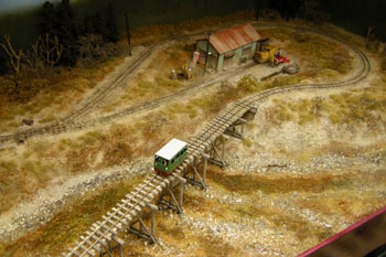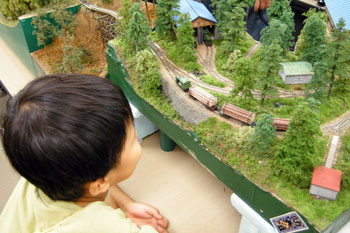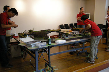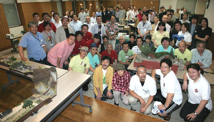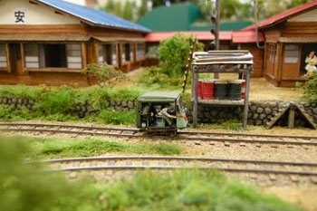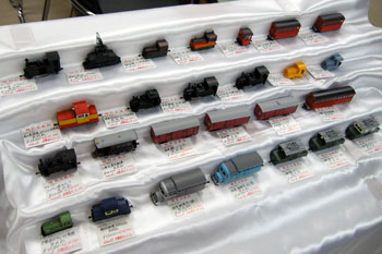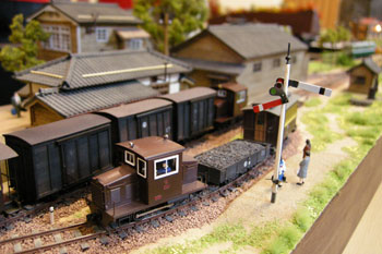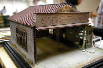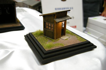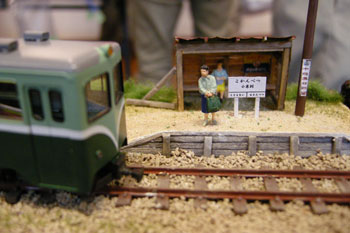 ![]() 今年で5回目となるお祭り。一時は隔年開催で、という声が主催者側から上がりましたが、昨年それを翻して開催したため、もう「恒例の」という冠詞で修飾されるイベントに育ちました。 ファンの皆さん方も、この軽便祭を迎えないと秋が深まった感じがしない(或るお客様の弁)、とまで言わせしめるような楽しいお祭り。 今年もエアコンの効きが弱まるような熱気の中で開催されました。 ![]() 会場はお馴染みの目黒さつき会館。そこを一歩出ればひっきりなしに通過する山手線のジョイント音が耳を塞ぐような立地条件。まあ、鉄道のイベントに相応しいとでも云えるのでしょうか? お揃いの赤いポロシャツが決まってる軽便モジュール倶楽部の公開運転会場。数次に亘る沼尻への遠征運転会の経験を積んで、設営や運転など手慣れたものです。 ![]() こちらは木曽モジュール倶楽部の部屋。超が付くほどに慣れたもので、どうしたら皆さんに喜んで貰えるか、までを考えてのモジュール選択から始まり、しかも毎年新作を追加して飽きさせない工夫を凝らしている様はベテランならではです。 面白いところではNナローのブースもありました。チッチャイですねえ!Nナローって!建物などはモロに豊富なNゲージ用が使えるのも利点のひとつでしょう。 ![]() ![]() 今回も多数のメーカーさんが出店されていましたが、その中からもりこー的に気になったブースから御紹介しましょう。 まずは昭和30年代あたり雰囲気をレーザーカットを駆使したストラクチャーで表現している「クラシックストーリー」さん。 今回は新作のバス車庫・煎餅屋・給水塔・連絡小屋などを展示販売していました。表舞台に登場したのはここ数年前からですが、長年この手の製品を手掛けてきただけに、そつのないまとめ方で、ファンの心臓をグッと掴んで離しません(^^♪。 ![]() こちらは機関銃のような製品展開をされている「ワールド工芸」さん。同じようなストラクチャーでも、先の「クラシックストーリー」さんとは対極的な作り方の違いで個性が出ていますネ。 また「特別企画品」と称して、在庫品を1割引きで販売していました(^O^)。ボクなんかは田舎に引っ越して世情に疎くなってしまいましたが、知らないうちに色々と出てるんですね! 若いスタッフの方とお話をしたのですが、彼はウチのファンで製品を買って下さっていたのにはビックリ(^O^)。製品の指向は違うものの大変参考にさせて貰っています、というお言葉にもビックリしちゃいました(^^ゞ。 ![]() そして11時の開場。早い方は9時ごろからお見えになって、この時間をお待ちでした!あれ?時計が狂ってる・・・。 ![]() くるまやさんの新作。実はこの春の沼尻遠征の前には出来上がっていたのですが、都合で参加できず初お目見えになりました。「汽車に注意」と書かれた石碑(?)がイイ感じですね! 軽便モジュール倶楽部の楽しいところは、「軽便鉄道」という大きな枠で括ってあるだけなので、沼尻での運転会のような場合を除いて、会員の自由なモジュール展開をしているところ。ですから、頚城の車両が来たと思えば、北海道の簡易軌道ものが続行で走って来たりします(^^♪。 ![]() このモジュールはそんな簡易軌道モノ。作者の矢島さんらしい駅名票にニヤリとされた方も多いのでは?え?写真が小さくて読めないって?ここの駅名は「小寒別(ふりがなで「こかんべつ」)」。両隣りの駅名は「くさらない」と「おまんべつ」と書いてありました(@_@;)。 ![]() 今回は去年来場された方から御要望が多かったという「二線級」を充実させてモジュールを選んだそうです。そして、二線級の代表格であるウグイ川線に欠かすことの出来ない「助六製品事業所」や「八丁暗」といったハイライトシーンを追加して今回に臨みました。 8tボギーDLが力にモノを云わせて長編成を牽く姿はカッコイイですね! ![]() ![]() 「U太」さんの新作「助六製品事業所」。ウン十年前、高校生の頃から林鉄のレイアウトを雑誌に発表してきただけに手慣れたものです。とはいえ、何棟もストラクチャーを作らなければならず、しかもあの入り組んだ線路配置を模型的にまとめなければならないので、結構苦労されたのではないでしょうか? 何とこの岩崎製小型モーターカーには動力が組み込まれていて(もちろんDCC運転用のデコーダーも)、結構スムースに走っていました! ![]() ウチの「助六の2線機関庫」もまさにドンピシャの場を得て満足気です! ![]() 一方こちらは「杣人」さんの新作。この方は崖っぷちがお好きですねえ(^O^)。好きこそモノの上手なれで、それがなかなかカッコイイ!御本人にそれを言ったら照れておられましたが、自信作だけに満更でもなかったような感じでした(^^ゞ。 ![]() 左は「軽便」のメンバーでもある「くるまや」さんの新作。彼らしいストーリー性のあるほんわかモジュールは和ませてくれます。上へ上へという意味ではない立体的な地面構成がベテランの味を出していますネ(^O^)。 お馴染みW
