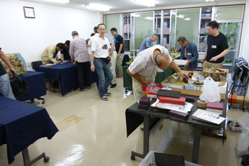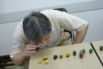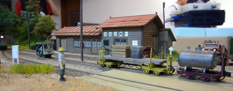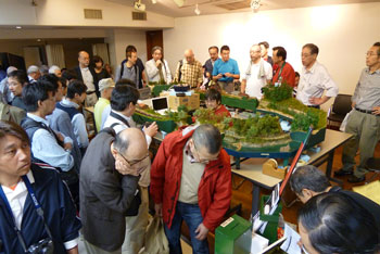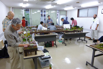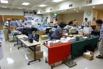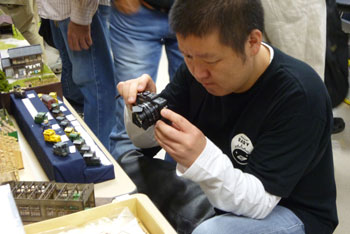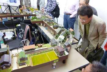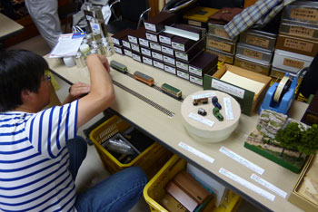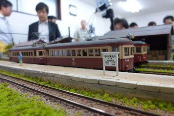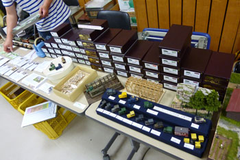 ![]() この時期恒例の軽便祭が、今年も目黒のさつき会館で10月2日に催されました。 今年で7回目になるこのお祭りは、今や国内のナローゲージャーにとって唯一かつ最大(あれ?唯一だったら最大も最小もないか?)の祭典にまで育ち、これを楽しみにしておられる方も少なくないはず。 そんな「軽便祭」。残念ながら来られなかった方も、遊びに来られた方の想い出としても、どうぞ御覧ください。 ![]() 当社のように地方から参加するメーカーは、前日に品物を搬入して当日に備えます。 今までは大きなステーションワゴンで運んでいたのですが、今年になってサルーンカーに乗り換えたので、いつもの定量であるコンテナが5個+1200のモジュールが入るかどうかがチョット心配だったのですが、大きなトランクルームのお蔭で何とか収まってしまいました(^^♪。 ![]() 今回は「ホイットコム作品展」の審査を前日に行う事にしていたので、会場に荷物を運びこんだあと、3時に審査員の西 裕之さんと某所で待ち合わせ。早速審査をして頂きます。 その審査結果は当社HPでお知らせしたようになりましたが、数は少なめながらもそれだけに力作が揃い、敢えてボクもこの段階まで見ないようにしていたのですが、西さん共々大いに楽しませて頂きました(^v^)。 ![]() 会場の使用可能な9時から準備開始です。11時開場なので、時間はあるようで余りありません。しかも、いつも並んで開場を待って下さってる方が多いので、15分ぐらい前にオープンしてしまい、結構慌ただしい時間設定です。 今回は大会場の舞台の上が木曽モジュール倶楽部なのですが(去年は軽便モジュール倶楽部でした)、ここで講演会も催す予定なので、エンドレスも小さ目です。 ![]() 軽便モジュール倶楽部と個人参加のグループは別室での展示。今回はむしろこちらの方が大きく使えたのではないでしょうか? 年に一回の大きなお祭りとあって、皆さん張り切っている様子が伺えますネ(^_-)-☆。 ![]() 業販コーナーの方も準備に大わらわです。 当社は来年リニューアルして発売する予定の「簡易軌道シリーズ」の発表や、新製品の「杉沢」や「能代」の展示を中心にまとめてみましたが、簡易軌道シリーズに対する反響の大きさにはビックリしました(^-^;;。皆さん首を長くして待ってて下さったんですネ! ![]() 他にはもうじき発売になる「杉沢の2線機関庫」の見本展示や、井笠シリーズの御案内などなど。「杉沢」は前回の「助六の機関庫」と同様に柱の構造も再現した超精密キットなので、それを御自分の目で確かめて頂けたようで良かったです。 井笠の方は早々と完売になってしまったホジ1〜3へのラブコールに対して、「ホジ101〜102を近々発売する予定です(^_-)。」と発表。早くも皆さんのボルテージが上がってるのを感じました(^^♪。 ![]() そんなこんなしている内に会場時間が迫ってきました。ふと外を眺めたら今か今かと開場をまってる方が列を作っていました。 建物に入ってから廊下&階段を登っていくので、結構な人数のようです。 結局、今回も10時45分にスタート! ![]() それからというもの、写真など撮ってる余裕などないので、これらは12時を過ぎてチョット一段落したかな?という時点での撮影。 でも皆さん朝から夕方までずっといらっしゃる方が多いので(喫茶店で云うと回転率は最悪ですネ(^^ゞ。)、常に会場は混んでる感じです(^v^)。 木曽モジュール倶楽部のコーナーでは、当社製のキャブフォワードや5tDLなどが運材列車を牽いて行き交う光景に、皆さん盛んにカメラを向けておられました。 ![]() カメラといえば、「杉沢の2線機関庫」にも盛んにカメラが向けられていたので、もうじき始まる受注はイイ感じかな(^_-)。 前にも書いたように、舞台の上では3回「けむりプロ」の皆さんによる講演会が開かれ、写真を交えてのベテランらしい思い出話に皆さん聞き入っておられました。 ![]() では展示レイアウトの方に目を向けてみましょうか。 流石にモーターを2個搭載した10tや8tのボギーDLは強力で、長大な運材列車を苦も無く牽いている様は圧巻! かと思いきや、協三の138号機を全閉ボンネットにした作品も、C客共々なかなか良い味を出していました!(^^)! ![]() 今回のモジュールレイアウトはスペースの関係から「一級線」とされていたので、助六谷のオメガループなどは含まれていませんでしたが、本線ならではの迫力ある編成が快走する様は、見ていて気持ち良いものでした(^O^)。 ![]() こちらは軽便モジュール倶楽部のコーナーから。 最近このクラブは軽便電鉄の面白さに重点を置き、各人が統一された塗色(かつての国鉄交直流電車のような)の電車を持ち寄って走らせています。 「木曽」と違って町並みや家々の工作が伴うので、それがまた別の面白みを醸し出していて、熱心なナローファンの注目を浴びていました(^O^)。 ざっと御紹介をしていきましたが、スペースの関係上から省かざるをえなかった部分も相当あります。 来年もきっと開催されるでし