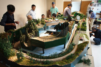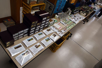 ![]() この時期恒例の軽便祭が、今年も目黒のさつき会館で10月8日に催されました。 今年で8回目になるこのお祭りは、今や国内のナローゲージャーにとって唯一かつ最大(あれ?唯一だったら最大も最小もないか?)の祭典にまで育ち、これを楽しみにしておられる方も少なくないはず。 そんな「軽便祭」。残念ながら来られなかった方も、遊びに来られた方の想い出としても、どうぞ御覧ください。 ![]() 当社のように地方から参加するメーカーは、前日に品物を搬入して当日に備えます。つまり2連チャンの休日出勤(^^ゞ。 去年から大きなステーションワゴンの代わりにサルーンカーに換えたのですが、いつものコンテナを5個(トランクに3個と、後部座席に2個のコンテナ+1200のモジュール)を積んで出発です。 当社の最寄ICはちょうど7日から名称が豊科ICから安曇野ICに変わり、ボクとしても通過初めになった感じです(^^♪。 ![]() 空いていれば3時間ほどで行ける距離なのですが、相模湖あたりで事故渋滞に填まってしまい、4時間半も掛かってしまいました(>_<)。しかも途中では雨まで降り出したりして・・・。 ところが翌朝起きてみたらモロ快晴!この手のイベントは雨だろうが人出は変わらないのが定評ですが、やっぱり晴れてるに越したことはありませんからネ(^v^)。 ![]() 開場は11時なのですが、ボクが会場に着いた9時過ぎにはもうお客様が待っておられ、その列は次第に長く長く・・・。皆さん熱心ですね!頭が下がります。 この建物はもと国鉄動労のもので、玄関前にはC55の動輪が何故かゲージを狭めて飾ってあります。 ![]() だいたい皆さん9時頃から搬入&セッティングを開始するのですが、もう会場内は火事場騒ぎのよう(^O^)。2時間もある、なんて思っちゃダメで、場合によっては開場時間を繰り上げる場合もありますからネ(^_-)。 ウチのコーナーは簡素な飾り付けなので(あとはオシャベリでフォロー(^^♪)、ものの1時間もあれば充分。あとは他所の具合を見て廻ったりして。オープンしちゃうとそんな暇はありませんからネ(^O^)。 ![]() 木曽モジュール倶楽部と軽便モジュール倶楽部とは毎年場所を入れ換えているので、今年は「木曽」が大きなスペースを使っています。 皆さん慣れたもので、実に手際よく連携プレイで仕立てあげていきます。 右の写真は「軽便」の方で、こちらもほぼ完成した状態。ここのところ電鉄モノに凝ってるようで、ウチの範疇とはチト違う方向性なので、軽〜く眺めただけですが(^^ゞ。 ![]() これがモデルワーゲンのコーナー。長机を2本借りて、そこに井笠のモジュールや諸々の在庫品などを並べています。 以前、歌登の役場を訪ねたときに頂いた「開基100周年」の幟も壁に貼って雰囲気づくりをしたりして(^-^;;。 ![]() まだもうチョット時間もあったので、個人参加のコーナーを見て廻ったりもしました。 このOnの加藤はもうかれこれ30年以上も前にボクが珊瑚模型店に居た頃に設計したもの。こうやって活躍(?)してるのを見ると嬉しいものです(^^♪。 あ、この電車は軽便モジュール倶楽部のでした(^^ゞ。ヘッドライトは勿論、テールもチャンと点くようになっててイイ感じ。 ![]() この2枚の写真はOn。腐ったバグナルもイイ味を出していますし、機関庫も素晴らしい出来栄え! 作者の方に聞いたら、鉾田にあった修繕庫を参考にされたそうで、ボクも何度も訪れた事があるだけに、懐かしくなってしまいました(^_-)-☆。 ![]() そして開場。待ってました!とばかりにドッと皆さん入り込んで来られ、あとはもうお祭り騒ぎ状態で、写真なんか撮ってる暇なんか皆無(^O^)。この写真も一段落して、ホッとしたとき。 ウチはめったに会場限定発売みたいな事はしないので、まあ、売上はそこそこですが、それよりも日頃メールなんかで連絡をするだけのお客様方とお話できるのが楽しみで来ているようなもの。 お陰様で喉はカラカラになっちゃうし、立ち放しで脚もビンビンに痛くなっちゃいますが、今回も楽しい時間を持つ事が出来ました! PS:当日会場で配布した予定品のチラシは、50枚増し刷りしましたので、無くなるまで納品時に送らせて頂きます。 動画:キャブフォワード快走-2 |
