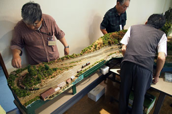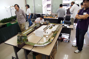 ![]() この時期恒例の軽便祭が、今年も目黒のさつき会館で10月6日に催されました。 今年で9回目になるこのお祭りは、今や国内のナローゲージャーにとって唯一かつ最大の祭典にまで育ち、これを楽しみに飛行機や新幹線に乗って来られる方も少なくはありません。 そんな「軽便祭」。残念ながら来られなかった方も、遊びに来られた方の想い出としても、どうぞ御覧ください。 ![]() ![]() 当社のように地方から参加するメーカーは、前日に品物を搬入して当日に備えます。つまり2連チャンの休日出勤(^^ゞ。 一昨年から大きなステーションワゴンの代わりにサルーンカーに換えたのですが、いつものコンテナを5個(トランクに3個と、後部座席に2個のコンテナ+1200のモジュール、助手席足元にはキャリアー)を積んで出発です。 前日の午前中に搬入してから、午後は「簡易軌道写真帖」再版の打ち合わせで銀座へ(^^♪。 今年の秋は異常気象で、10月だというのに30度近い東京。着るものに困ってしまいます・・・。 ![]() ![]() 開場は11時なのですが、ボクが会場に着いた9時過ぎ。会場は鉄火場のようで、ボクもせっせと自分のブースの飾り付けに大わらわ。 以前の経験から、建物の周りに今や遅しと開場を待つお客さまへの配慮から、開場を早める事もあるので、チョットひと休みして一服も出来ません(^-^;;。 ![]() それでも何とか準備も完了して、館内の様子を見に行く事が出来ました。 木曽モジュール倶楽部の皆さんは手慣れたもので、早々とモジュールの連結も完了して、せっせとレール磨きをしたり走行チェックをしたり。 モジュールレイアウトの良さは、90cm程度のひとつのモジュール単位を密度高く仕上げる事が可能なため、とかく大きなレイアウトだと息切れしてしまい、密度も低くなってしまいがちなのを避けられること。 あとは、その出来上がったモジュールを持ち寄って、普段自宅ではスペース的に難しい大きなレイアウトの中で自慢の車両を走らせられることです(^^♪。 ![]() 別の部屋でも準備が着々と進められていました。こちらは軽便モジュール倶楽部のレイアウト。 以前作った沼尻のモジュールの大半は、地元ゆかりの沼尻に展示中とあって、最近は軽便電鉄モジュールの方にシフトしているようです。 ![]() もうひとつの部屋には個人参加のナローゲージャーが自慢の作品を持ち寄って展示。 ギャラリーの居ないこの時間はまだ閑散としていますが、あと30分も経てば物凄い熱気に包まれる事でしょう(^v^)。 そして建物の外に出てみたら、早朝から開場を待ちわびたファンの方々が道路の方まで並んでいらっしゃいました。 スタッフの中部クンも時計を見ながら、開場を早めようかどうしようかと思案中の様子なので、ボクも持ち場に戻りましょうか(^^ゞ。(続く) |
