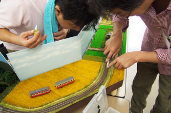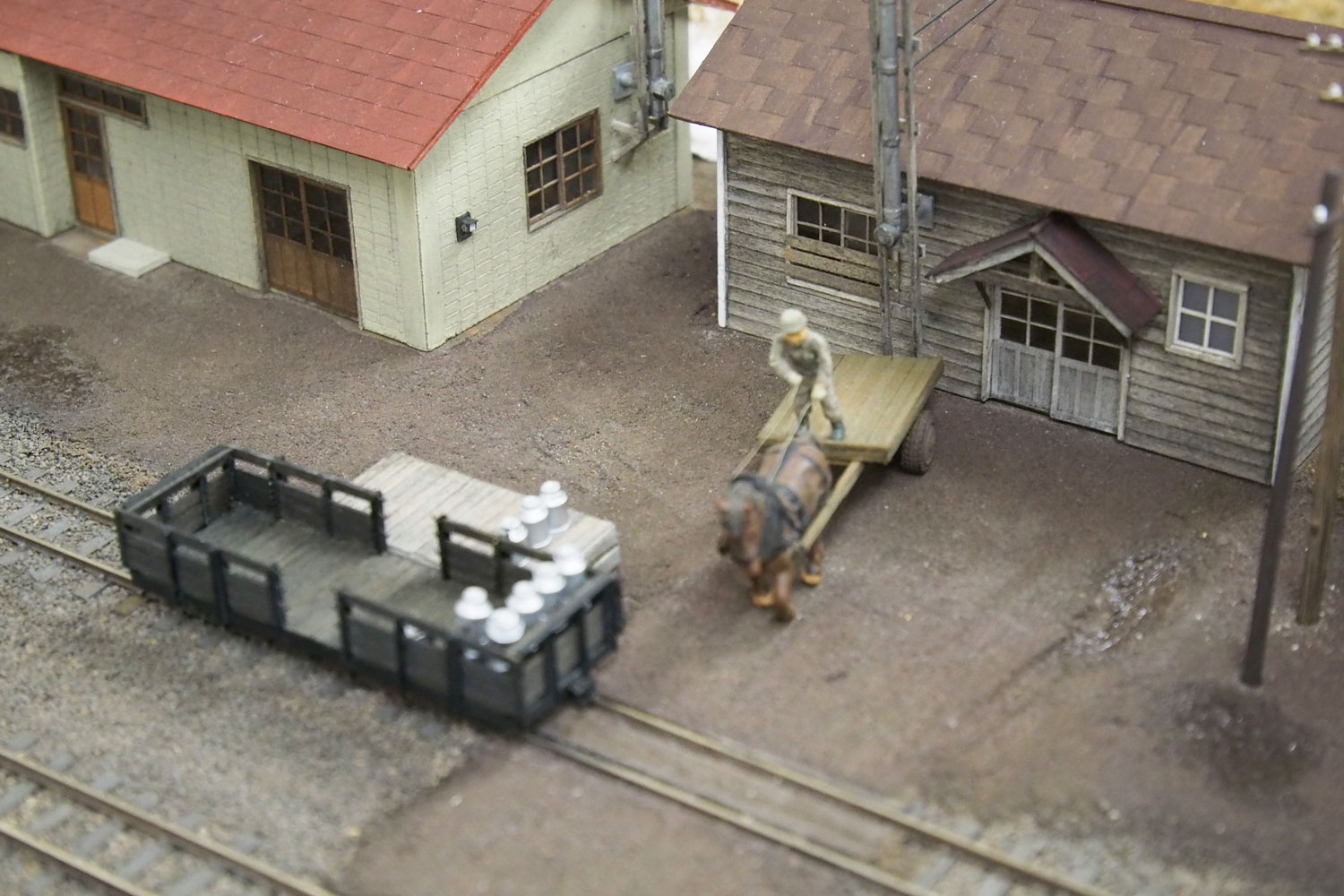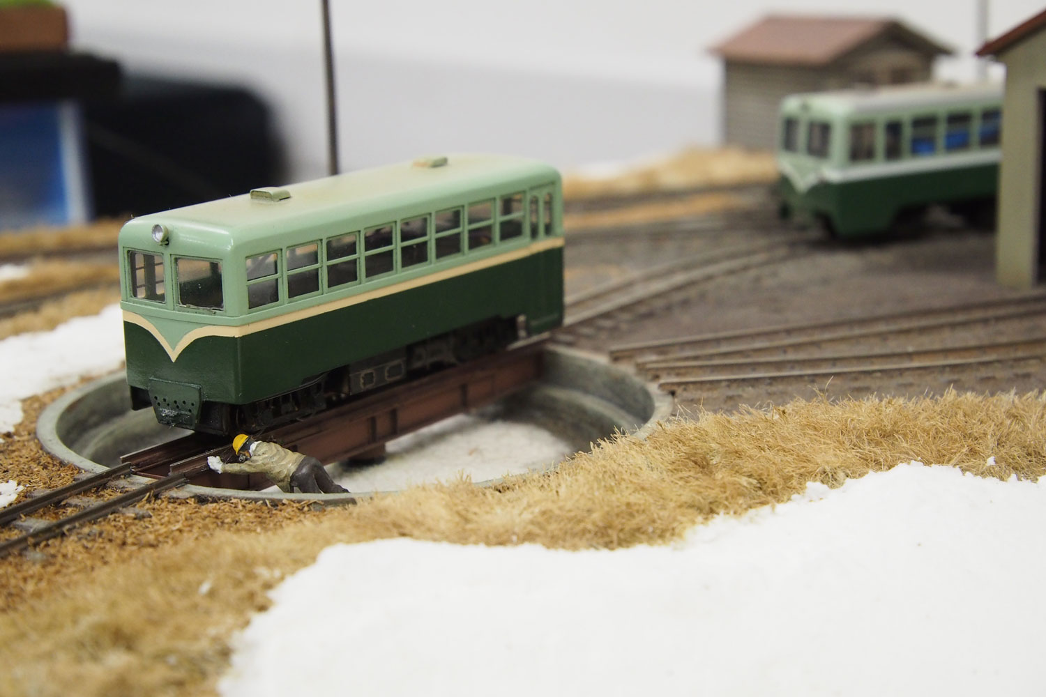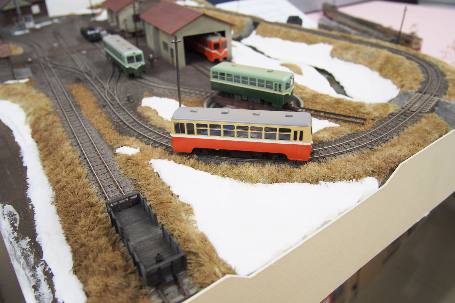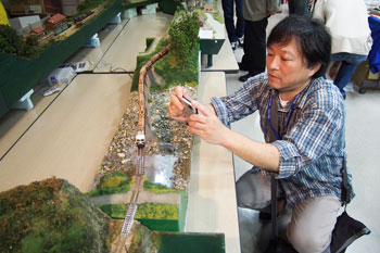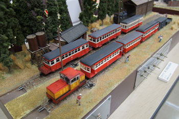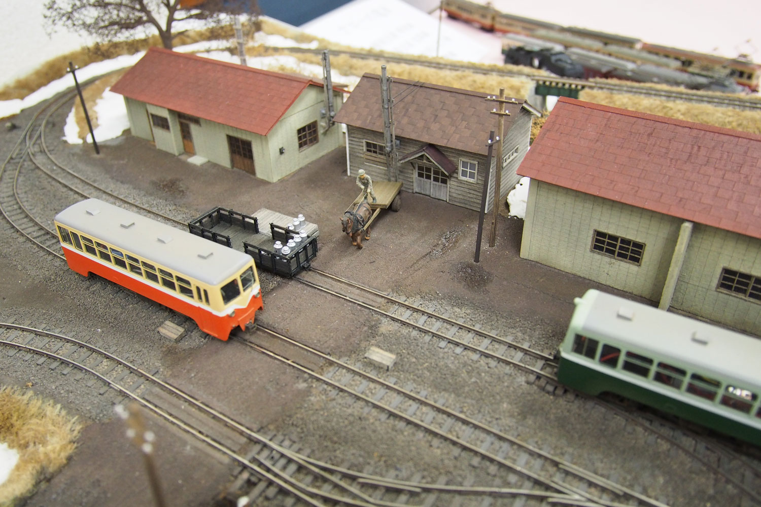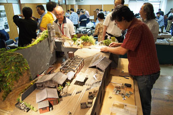 ![]() この時期恒例の軽便祭が、今年も目黒のさつき会館で9月28日に催されました。 今年で10回目の節目になるこのお祭りは、今や国内のナローゲージャーにとって唯一かつ最大の祭典にまで育ち、これを楽しみに飛行機や新幹線に乗って来られる方も少なくはありません。 そんな「軽便祭」。残念ながら来られなかった方も、遊びに来られた方の想い出としても、どうぞ御覧ください。 プロの作品ではない、皆さんと同じアマチュアの方々が作った模型の世界は素晴らしいです(^_-)-☆。 (上のタイトルカットなど、青い線で囲った写真はクリックすると、大きな画像で御覧頂けます。) ![]() 今回は気合いを入れて、18年前に中標津の酪農家で頂いた集乳缶を会場に持って行って飾る事にしたので、タワシでせっせと掃除をしてやりました(^O^)。 この集乳缶は模型製品の元になったもので、これを採寸して設計をしました(^^♪。 トランクにはこの夏に鶴居村を訪れた際に、役場の方に「東京で開催される模型祭で飾りたいから」と云って分けて頂いたポスターも額装して積み込みました(^_-)。 ![]() 気合いと云えば、今回は1500長の2台のジオラマも持ち込む事にしました。ボルボのステーションワゴンに乗ってた頃にはこのように広いラゲージスペースがあったので、2台のジオラマは楽勝だったのですが、流石にいま乗ってるセダンでは無理と諦めていたもの。 でも、何とかなるかな?と思い直してトライしてみたら、運転席から左のサイドミラーが全く見れないものの、何とかなるさという勢いで行ってしまいました(^O^)。 ![]() 開場は11時からですが、ボクが9時に会場に行った時にはお客様が外で待ってらっしゃって、その数も次第に増えていきました。 荷物の搬入は9時からなので、結構きついものがあって、中は火事場のような騒ぎです(^-^;;。 ![]() ![]() しかし大体ウチの会社は毎年同じような飾り付けなので慣れたもの(^v^)。いつものようにテーブルを2台借りて、その上に飾り付けて行きます(^_-)。 今回は去年作った簡易軌道上茶呂停留場のジオラマの他に、木曽の田島停車場をイメージして作られたものも展示しました\(^O^)/。 例の集乳缶は会場でも大受けで、初めて見る方も多かったのか、指の関節で叩いて「これは鉄で出来てるんですか!ステンレスだとばかり思ってました!」とか、実際に持ってその重さを実感されてるお客様もいらっしゃいました(^^♪。 ![]() 何とか10時半頃には何とか形が整ったので、僅かな時間ですが「取材」に出掛けました(^v^)。開場になってしまうと、接客のためにブースを離れる事も難しくなってきますからネ(^-^;;。 こちらの方も大わらわ状態(^O^)。それなりに準備はしてきているのでしょうが、やはり現場での調整も必要になってくるものです。 ![]() 矢島さんは先のレイアウトコンペで入賞されたレイアウトを持参されていました。 当社の加藤や魚梁瀬のロコを独特のカラーリングに仕上げて、ホッパーのある田舎の風景をこじんまりとまとめたものです。 流石に軽便モジュール倶楽部のメンバーだけあって、手慣れた工作が光っていました(^^♪。 ![]() この軽便祭も10回目ということで、過去事務局から発売された記念製品を組み立てた作品群も展示されていました。 管さんの特徴ある作品や、当社の部品をキャブに組み込んだ小島さんの作品など、いずれも素晴らしい出来栄えでした(^_-)-☆。 ![]() 服部さんは自作された尾小屋の車両軍を展示。尾小屋は気動車が違うスタイルで3両、三重交通などから移籍したバラエティーに富んだ客車も豊富で、なかなか魅力ある存在です^\^)。 今井さんはウチの沼尻の車両を綺麗に組み上げたものを展示。とかくナローの車両というとウェザリングコッテリに仕上げる方が多いのですが、このように綺麗に仕上げるのは意外と難しいもので、きっと腕に自信がおありなのでしょう。流石です。 ![]() ![]() ![]() 今回の軽便祭で一番ボクの目を惹いたのが倉林さんが作られたこのレイアウト。云わずと知れた道東の雰囲気を再現したものですが、遅い春の到来を残雪で表現されたストーリー性、北海道独特の建物の作りなどを観察&再現した工作力、ゴチャゴチャ物を置いて誤魔化さずに勝負している点など、正統派レイアウトとして高い技術力を感じました。 タイトルカットも含めて、写真をクリックすると大きな画像になりますので、とくと御覧ください。 ![]() 11時になるとドッとお客様が入場され、それからは助っ人の工藤クンと共にてんてこ舞いの時間。ようやく昼食にありついたのは3時でした(^-^;;。 当日会場で配布したチラシはこちらからダウンロードできるようにしてありますが、その話題で持ちきりになりました(^^♪。 会場に持ち込んだキットや完成品もよく売れて、景気の回復を肌で感じさせて貰いました\(^O^)/。 ![]() 閉場間際の6時前になってようやく見落としたコーナーを見て廻る事が出来たのですが、木曽モジュール倶楽部の作品の中でこの木曽の