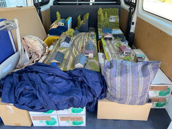 ![]() 実開催としては何と3年ぶりとなる「第18回軽便鉄道模型祭」(第16回・17回はエアー開催)が10月2日に開催されました。 3年ぶりということもあって皆さんも楽しみにされていたでしょうが、ボクも大いに楽しみで張り切って出掛けて行きました(^^♪。 前回は過去最高の有料入場者数867名だったものの、流石に今回はコロナを懸念されたのか648名ということでしたが、いつもならばモロ3密という会場は万全の対策をとられていたため、適度に熱気にあふれていました(^O^)。 アマチュアの団体によるこのお祭りは、今や国内のナローゲージャーにとって唯一かつ最大の祭典にまで育ち、これを楽しみに飛行機や新幹線に乗って遠方から来られる方も少なくはありません。 そんな「軽便祭」。残念ながら来られなかった方も、遊びに来られた方の想い出としても、どうぞ御覧ください。 プロの作品ではない、皆さんと同じアマチュアの方々が作った模型の世界はホントに素晴らしいですヨ(^_-)-☆。 9月30日 ![]() 前回はテーブル4本という参加社で一番多いテーブル数だったのですが、今回はそれに輪をかけて5本を用意。 とにかくコロナになってからは巣ごもり状態でレイアウトの製作に勤しんだので、未公開のものが沢山ありすぎて、最低でも5本は必要と踏んだ訳です。 それらの床寸法を書き出して駒を作り、縮小したテーブルの上に配置してみたら、乗り切らないことが判明(@_@)。 仕方なく留守番をさせるものが出てしまいましたが、製品を販売するスペースも確保しておかなければなりませんからネ(^O^)。 ![]() となると、これだけ多くのレイアウトを運ぶためにはレンタカーを借りなければならないということで、松本のニッポンレンタカーへ行きハイエースを借りてきました。 ![]() ![]() 早速積み込み作業の開始。流石にステーションワゴンと違って床面積が大きいので、パズルのように考えながら積み込む必要もなく、楽々積めました(^_-)。 最後の仕上げにマグネットシートに会社のロゴを印刷して貼り付けて完了(*^^)v。 10月1日 ![]() ![]() 8時半に出発して中央道は快調に飛ばして行ったのですが、首都高に入ってからは渋滞に巻き込まれてしまい、3時間半で到着。 ![]() ![]() 会場の控室に荷物を置かせて貰って、とりあえずはヤレヤレ(^^♪。 定宿にしている大塚のホテルに投宿して、コロナが怖いので持参した本を読んでいたのですが、「さかつう」がすぐ近くにあることを思い出し、敢えて電車ではなくハイエースでお店に向かいました(^_-)-☆。 こないだの「加増田鉱山のレイアウト」でストックしてあったマイクロエンジニアリングの細い引き抜きレールを使い切ってしまったので、次に向けてストックしておきたかったからです。 幸いにもコード40という極細のものの在庫が7本だけあったので、これを総てゲット! ジョイナーとスパイクも買っておきました。これで「松本製材のレイアウト」が作れる(*^^)v。 10月2日 ![]() ![]() 会場には8時過ぎに着いて早速設営を始めたのですが、いつも手伝ってくれている山下クンや「奇天烈トロッコ」の著者・青森さんとも久しぶりに再会。 今日はこの3人でモデルワーゲンのブースを運営していきます(^^♪。 早速5本のテーブルにカバーを被せて、まずはレイアウトを設計通りに乗せて行ったのですが、どうしても完成品が入っている化粧箱を乗せるスペースが足りない(@_@)。 急遽事務局の方に頼んでテーブルを1本追加して貰いました(^^ゞ。 ![]() ![]() これで何とか展示できたのですが、ここへきて忘れ物があることに気づいた。「朝顔カプラーシステム」の在庫を持ってくるのを忘れた~(>_<。)~ 仕方がないので、見本パネルのその部分にはカバーをしておきました(^^ゞ。 |
