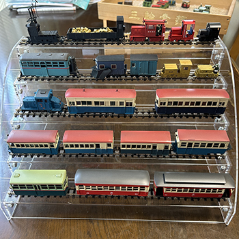 ![]() 「第21回軽便鉄道模型祭」が9月28日に開催されました。 2003年の珊瑚祭に端を発し、モデルワーゲン祭り 2004を経て、2005年に第一回目の開催となった軽便祭。 このリポートのタイトルは「ナローが異端でなくなった熱い一日」と書いたのですが、その軽便祭も何と21回を迎えることになり、運営されてきた方々(もちろん皆さんと同じアマチュアのモデラーです)の御尽力には頭が下がります。 2015年いらい足かけ11年・計9回にわたって会場としてきた綿商会館(コロナ禍で実開催中止のため)が今年9月一杯で貸ホール事業を終了する運びとなり、今回が同館での最後の開催となりました。 去年は第20回という節目でもあり、ボクも70歳を超えて体力的にきつくなってきたので、去年を最後に引退しようと思っていたのですが、皆さまから「規模を縮小してでも是非参加して下さい!」という声に背中を押される感じで出展を決めました。 北海道や九州、関西からお得意様方が来られ、「もりこーさん、初めまして。札幌のXXです(^^♪」などと、いつもは宛名書きでしかお名前を憶えていない方と、目の前で話が出来るというのは嬉しいものです(^_-)。 アマチュアの団体によるこのお祭りは、今や国内のナローゲージャーにとって唯一かつ最大の祭典にまで育ち、このように飛行機や新幹線に乗って遠方から来られる方も少なくはありません。 そんな「軽便祭」。残念ながら来られなかった方も、遊びに来られた方の想い出としても、どうぞ御覧ください。 プロの作品ではない、皆さんと同じアマチュアの方々が作った模型の世界はホントに素晴らしいですヨ(^_-)-☆。 9月27日 ![]() とにかく今回は少しでも出展の規模を縮小しようということで、展示方法も大幅に変えました。 今までは展示する車両ごとに似合う情景を持って行ったのですが、今回はグッと割り切って持参した情景は木曽モノの2台のみ。 それ以外のシリーズは新たに用意した雛壇に飾る事にしました。 ![]() ![]() またレンタカーも松本までニッサン・キャラバンを借りに行くのではなく、穂高でも借りられるカロゴンクラスの小型のクルマ。 とはいえ、最低限持って行かなければ商売にならないもののスペースは確保して、何とか詰め込みました。 8時半に出発して中央道は快調に飛ばして行ったのですが、首都高に入ってからは渋滞に巻き込まれてしまい、結局いつもと同じ3時間半で到着。 正午から搬入受付開始時間にドンピシャのタイミングでした(^^♪ 9月28日 ![]() 当日の展示開始は9時からで2時間で準備をしなければなりませんが、大概は開場を前倒しにしてお待ちになっておられるお客様への配慮とするのですが、今回も10分ぐらい前倒しになりました。 今回のテーブル数は5枚。会場では最大ですが、これでも頑張って減らしました(^O^)。 ![]() 向かって左から順に、書籍の販売コーナー、塗料とパーツの見本展示、特価品コーナー。 ![]() 袋入り製品の見本と、奥には完成品の在庫が積まれています。新作「坊主岩停車場」の情景と手前には木材の見本やストラクチャーキット。 ![]() 新作「大鹿ジャンクション」と、その手前には雛壇の展示。開場から1時間半は怒涛の忙しさで、喉が枯れるような慌ただしさ。 ![]() ようやく1時頃になって少し落ち着いてきたので、知り合いの方のブースを覗いたりしてみました(^-^)。 城東電軌さんのブースで小さな集材機を見つけたので、ついそそられて買ってしまいました(^_-)-☆。 |