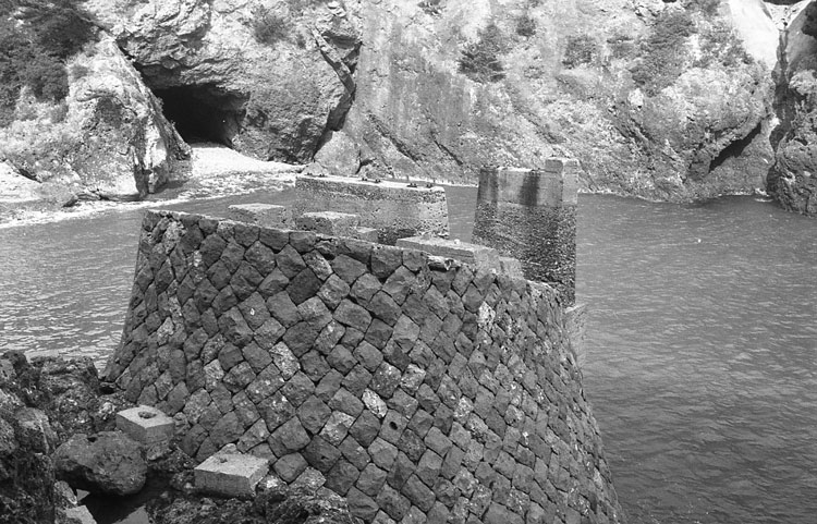 ここは江戸時代初頭に発見され、近代に入ってからは土肥鉱業により金・銀・銅が採掘され、積出港跡にボート運搬軌道の遺構が見られました。
