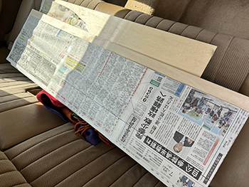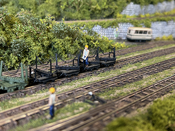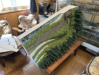 ![]() ![]() ![]() 車両を置いてみて、情景をシチュエーションしながら、とりあえず3体の人形を固定してみました(^_-)-☆。 「大鹿ジャンクション」では詰所の裏側で立ちションをしていた作業員を、試しに運材台車に立たせてみたら手の位置がドンピシャでした(^^♪。 ![]() いつものように新聞紙で型紙を作り、近所の木工屋さんにベニヤ板を持ち込み、ミシンカットの依頼をしてきました(^-^)。 出来上がりは今度の日曜日ということです。 ![]() 実は前作の「大鹿ジャンクション」で発生した問題なのですが、今までの背景写真では幅が足らず、大きな背景画が必要になりました。 そこで、大きなハレパネを買ってきて、自分で撮影した写真をA3にプリントアウトして並べて貼ってみたのですが、空の色調や明るさが揃わなかったり、貼り継いだ写真の連続性に無理が出たりして、結局は使い物になりませんでした。 あるお得意様から「箱庭技研」というところから大きな背景写真が出ているということを教えて頂きました。そこで900x600mmの背景写真を購入。 カレンダーのような紙に印刷されているものでなかなか良い感じだし、横に繋げれば1800mmの背景画が出来るようになっています。 これをそのまま使っても良いのですが、やはり何かで裏打ちしておいた方がシッカリして良いだろうと考えたものの、自分で綺麗に仕上げる自信もない。 そんな事から、今日「表具店(襖張りなどをするお店)」へ持って行って相談したのですが、和紙や壁紙だったら出来るけど洋紙はやったことがないと云われ断られてしまいました。 やっぱり腹を決めて1800mmのシナベニヤ板にスプレー糊で貼るか(両面テープでは絶対に上手くいかない)、暫くはこのまま使うかですね(^O^)。 出来上がった化粧板を引き取ってきたので、今朝は木工ボンドと小釘で固定。 ![]() ![]() 「大鹿ジャンクション」と同じ黒色に化粧板を塗り、乾いたところで画竜点睛にワーゲンプレートを貼って出来上がりです(^_-)-☆。 板を買ってきたのが6/17でしたから、約40日の工期でした。 |