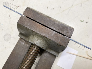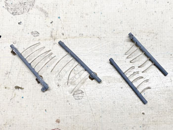 ![]() どうも車輪清浄装置の水の向きが「20代みたいに元気が良すぎる」ので、角度を修正しました(^O^)。 ![]() でも、やはり「20代みたいに元気」なのを角度修正しただけではまだ水に勢いがあり過ぎるので、抜本的に作り直して「使い古された60代」の勢いにしようと作業を始めました(^O^)。 前回はφ10mmの真鍮棒に巻き付けてライターで焙ってカールさせたのですが、今回はφ5mmの真鍮棒にしてみてある程度は満足(*^^)v。 導水パイプをプラ棒から作って塗るところまではやって寝たのですが、翌朝見たらカールが緩んで元に戻ろうとしてる(@_@)。 これじゃ「40代」なので失格(≧▽≦)。 ![]() ![]() 今度はφ3mmの真鍮棒に巻き付けて再度チャレンジ。釣り糸は50mもあるのでまだまだ充分にありますから(^^♪。 そのまま暫く置くとまた元に戻ってしまうかも知れないので、手早く適当な長さにカットして導水管に接着。 ![]() 最初に作ったものと比べると明らかに60代っぽく「勢いは減衰」していて満足(*^^)v。 早速レイアウトに設置してみました(^^♪。 |