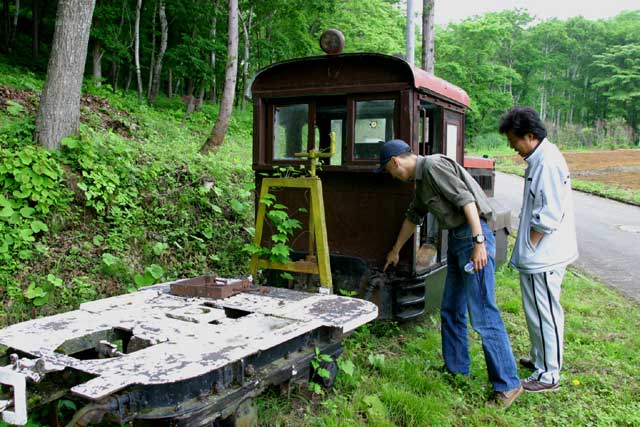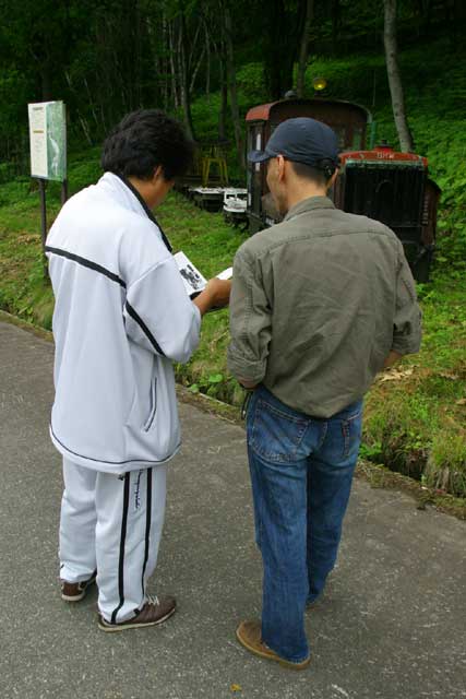 ![]() バイブルの「西さんの本」を持参されたスバルさんは、蜜澤さんとオリジナルとの変更点を仔細に検討。蜜澤さんはオデコにヘッドライトがある時代のスタイルに惹かれているようでした。現在では崩壊してしまい撤去されたB客に使われていた台車の上には、恐らくB客の物と思われる飾り金具が。何のだろう。転轍機は国鉄モノと比べるとやはり小振りですね。 |