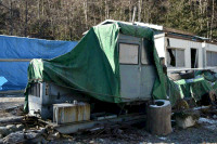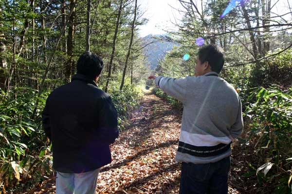 ![]() これは先ほどの鉄橋を渡ったところです。鉄橋を渡るとじきに白川線と関西電力専用線との分岐があります。一番左のカットはまさに天羽さんが撮影された場所です。白川線の跡は完全に林道になってしまっていましたが、集材機も発見してしまいました。