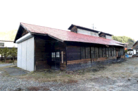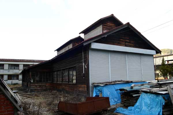 左から機関庫・事務所・修繕庫の跡です。当時の写真と見比べても、さして変わっていないのは嬉しい限りです。実は修羅さんは密かに田島のモジュールを目論んでいるようで、盛んに建物に巻尺をあてていました。出来上がりが楽しみですね。田島の建物のご紹介は、別項で改めてするつもりですので、貴方もジオラマ工作にでもチャレンジしてみませんか?午後2時頃だというのに、構内は霜がビッチリと張っていて、寒かったです。