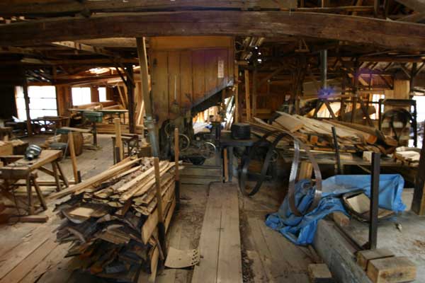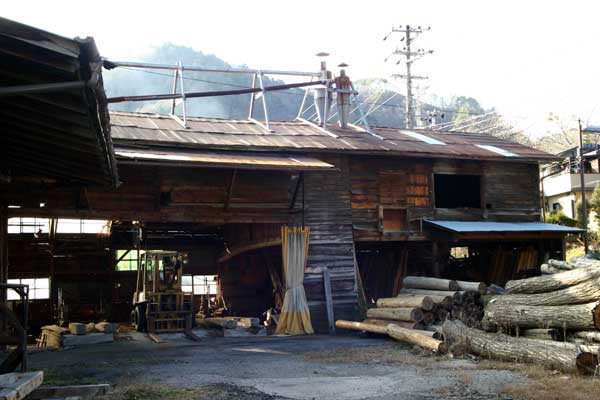 今度は僕のリクエストで立ち寄った製材所です。三岳村にあるこの製材所は、ほど良い大きさで(とは言っても、そのまま模型化すると、巨大になってしまうのでしょうが)ほど良くくたびれた感じが気に入っていました。いつかは取材に、と思っていたのですが、今回ようやくその夢が叶いました。しかし、来意を告げたところ、もう廃業してしまうとのこと、どうやらギリギリ間に合ったようです。この製材所も別項で詳しくご紹介するつもりです。製材所のキットなんて製品化をしても売れないだろうなあ・・・なんて言ったら、少なくとも二つは売れますヨ!とお二人さん。