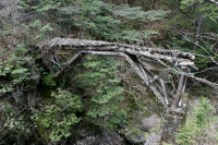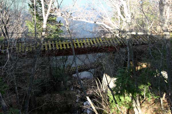 日没までには少し時間があったので、瀬戸川線の跡にも行ってみました。瀬戸川線の分岐点近くには穴沢の鉄橋が残っています。下が旧王滝本線、上が新王滝本線の跡です。この情景も誰かが今度モジュールでチャレンジすると聞いています。瀬戸川線の例のティンバーは半年振りに見たら、こないだよりも捻じれが進んでいるようで崩壊が進んでおり、この冬の雪に耐えられないんじゃあないかな・・・と我々は話し合っていました。ついでに看板シールの題材をゲット。冬の日没は早くて、撮影不可能になってしまったので、今回は打ち上げ。今回の成果はいずれ、ということで家路を急ぎました。
