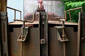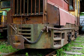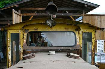 ![]() この冬に製造予定の7tDLのデータ集めのために、王滝村田島停車場跡で保存活動をされている「りんてつ倶楽部」さんの活動日に合わせて出掛けてきました。ここに保存されている7tはNo.84です。84号機はKATOのような屋根が特徴です。 ![]() まだまだ梅雨真っ只中の時期でしたが、撮影や採寸の時間帯はラッキーにも曇りで、却って撮影日和。あまり天気が良いと影が写り込んでしまい都合が悪いんです。 王滝村のやまばと号用DLのように、中央の窓がHゴム支持で脇には縦長窓があるスタイルも、84号機を特徴付けています。台枠の寸法を測ってみたら、台枠高さは同じものの全長で8t機の98/99より265mm、ホイールベースで45mm短いことが判明。やはり7tと8tの違いですね。 ![]() 外観的に一番の特徴である屋根は、前側は普通のヒサシ状なものの、後ろ側は妻板とも云うべき板が貼られています。こんなところもぜひ模型では再現してみたいものです。 ![]() 田島の構内にはラッセル車も保存されています。残念ながら木製の台枠は朽ちてしまって無いのですが、上まわりも今となっては貴重な品。冬の製品化を考えて採寸してきました。ラッセル部分の後ろ側ってこうなってるんですね。 ![]() ラッセルは二つのハンドルで上下できるようになっています。まるで夕張鉄道なんかの「スノウプロウ上下動装置」みたいですね。模型化したときには、ここいら辺がひとつの見せ場になりそうです。ただ、ハンドル軸を支えている部分は写真のように斜めにかしいでしまっていますが、現役当時はまっすぐに付いていたようです。 |