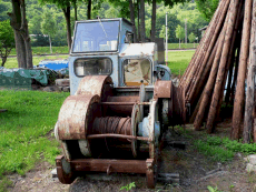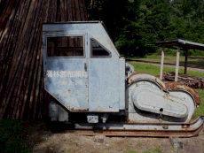 あと丸瀬布には集材機も保存(放置)されているのですが、よく見るとこの集材機、面白いですね。キャブの高さが追加工事されていて、継ぎ目がハッキリ判ります。