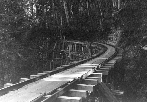 ここから先がΩループで有名な伐採線への道です。豊富な桧材を利用して組み立てられたティンバートレッスルは、ここならではの景観。この旅の最後にとくと御覧ください。