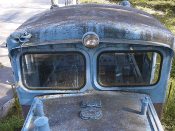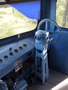![]() 広々としたキャブ内。手ブレーキホイールは横向きと後ろ向きとがあります。 |