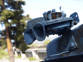 ![]() ラジエターグリルも奥行きがあります。タイフォンは2連でカタツムリ型。