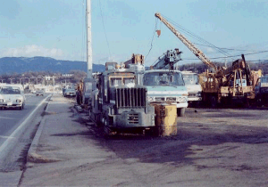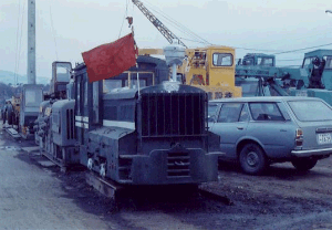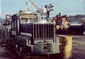 よもやま話(2000年1月23日付け)で御紹介した「井カサ」。柴草さんが他のカットも送って下さいましたので、改めて御紹介いたします。 撮影は昭和56年、岐阜県土岐市の中日特車販売いう建設機械、重機の中古販売業者の店先にあった酒井です。 この機関車は、鉄道番外録2(ないねん出版)の4ページに出ているものと同じだと思いますが、当時は、これが商品なのだったと思うと時代を感じさせられます。(当時は就職2年目で、なにも解らず動き回っている中で突然目の中に入ってきた機関車でした。当時は、まだ木曾森が廃止となってからまもなく、岐阜ではあちこちで車両が見られました。)