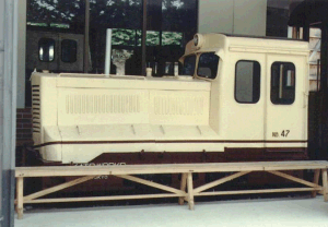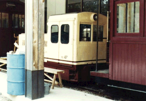遅くなりましたが47号機の写真を送ります。赤沢での写真は、大勢の人が撮っているのではないかと思って、あまり価値はないかと思っていましたが、こんな写真でOKでしょうか?私の場合は廃止になってからの木曽森しか知らないので、赤沢とかの保存車両の写真しか持っていません。 写真は87年に赤沢に行ったときに撮ったものです。当時は良く分かっていなかったこともあり、変わった形のがあるなぁ位しか思っていませんでした。 ところで話が変わりますが、33号機を2ヶ月位前に見に行って来ました。現在も千葉さんの写真と同じ状態でした。写真を撮ろうかとカメラも持っていきましたが、日曜日の昼間に行ったこともあって、ちびっこのおもちゃになっていて、とても写真を撮る雰囲気になかったのでやめました(^^;。ではまた。 もりこー:愛知県在住のワーゲンクラブ会員・杉浦弘さんが、写真を送って下さいました。赤沢に投入された当初は、写真のように屋根上が黒く塗られていたんですね。これも今となっては貴重なひとコマです。