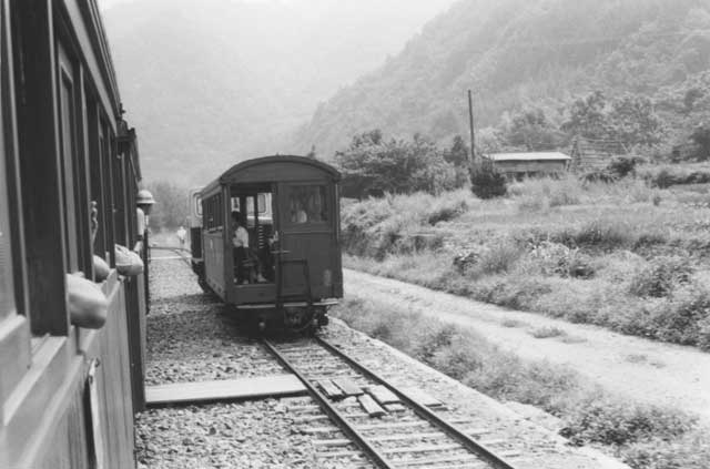 ![]() 年末年始は伐採作業もお休み。やまばと号の専用となります。学校も休みだと思いますが。 ![]() 2軸のゴンドラ、E型有蓋貨車No.2が見えます。 ![]() みやま号の出発を前に、編成を組んでいます。 ![]() ![]() 途中引込線ですれ違った「みどり号」を牽引するNo.128。 ![]() 夏の日差しが気持ち良さそうです。客車の窓も全開です。 ![]() すれ違った空車を引き上げるNo.122牽引列車。 ![]() 田島に進入。すれ違うのはNo.135。 モーターボートを積んだ運材台車がいます。ダム湖の巡視用でしょうか? ![]() ![]() 上の列車の後姿です。 ![]() ![]() タブレットを受け取る協三No.141。 ![]() その列車の最後尾には木片専用車が。 ![]() 白川と書かれた小型有蓋貨車。 |