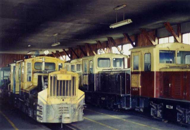 ワーゲンクラブの会員で京都府在住の丹羽雄二さんから、多数の写真をお送り頂きました。いずれも現役時代の貴重な写真。10回に亘って掲載しますので、モデリングの参考になさって下さい。 丹羽さんが木曽を訪問されたのは、1974年4月と1975年8月の2回です。(解説:もりこー) ![]() 田島で憩う91号機。エメラルドグリーンに塗られているのが判ります。 その奥には無蓋車が。 手前側がブレーキポストで、運材台車のような台形のポストが付いています。 ![]() 7t・84号機。右端には協三の10t・No.141が見える。その奥は同じくNo.127。 ![]() ![]() 同じく84号機。この機関車は屋根の形状に特徴があります。 また「林道」のプレートを付けている写真をよく見かけます。 ![]() 田島のバックヤードで。左の機関車はよく「謎の」と呼ばれる97号機。 氏素性がハッキリしないところから命名されたようです。 右の61号機は、大きな引き違い正面窓、前SAKAIに板バネ軸受なのが判ります。 ![]() 上松で入換中の7t・107号機。 平田さんのアルバムでも登場しましたが、いつもこの機関車は入換に従事しています。 ![]() ![]() 7t・84号機。運材列車やB客を牽いて上松構内を入換中のようです。 |