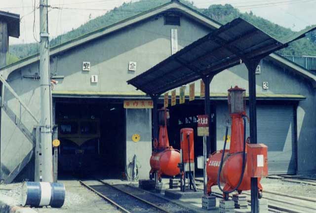 上松の機関庫前にはガソリン計量器が備え付けられていました。