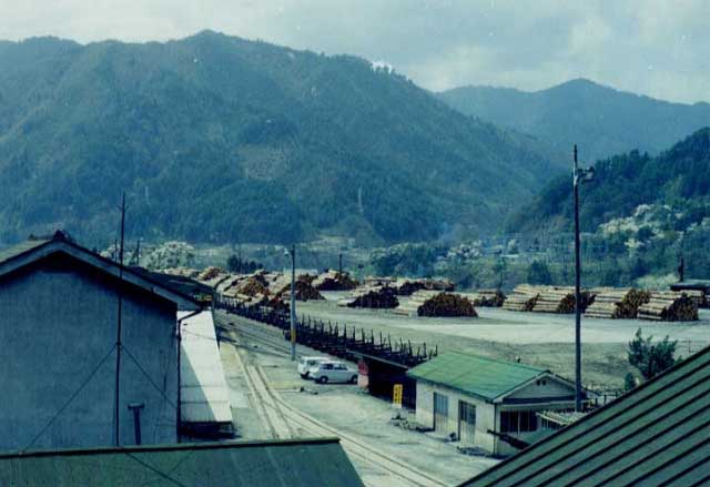 機関庫のあたりから見渡す上松の土場。今でもこの光景は変わりません。