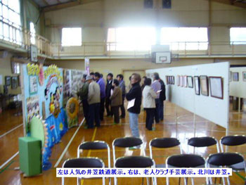 井笠鉄道の前身である井原笠岡軽便鉄道の創業は1911(明治44)年7月1日ですから、満100歳になるんですね。文化祭の会場は北川小学校体育館で、生け花・小中学生の絵画・老人クラブの手芸・舞踊などの実演などが公開されました。