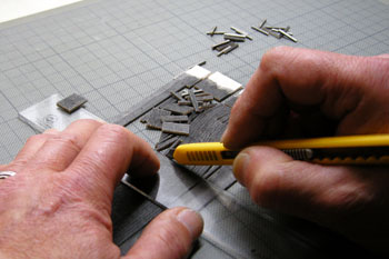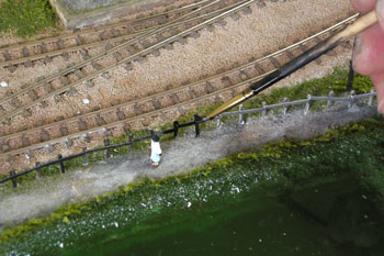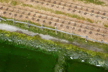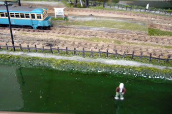 ![]() 1月25〜27日 撮りだめた写真を整理しながら、せっせと原稿書きです。写真を見ながら「ここはどうだっけ?」なんて思い出しながら(^^ゞ。 27日は自動車免許更新のため塩尻のセンターへ。2時間もの講習を受けさせられて(何故だかは敢えて書きませんが)帰宅したのは夕方。夕食後も前日に引き続いて原稿書きです・・・。 1月28〜29日 何とか今月中にはケリをつけたいと思っていたのですが、ここまで来るとようやく目途がたった感じです。この二日間は月末の帳簿作業と並行しながら作業を進めていきました(^O^)。 田圃に流し込んだデブコンを触ってみると、まだ少しベタつく感じ。気を付けてはいましたが、ホコリもチョイチョイと乗って固着しちゃってます。まあ、田植えをすれば目立たなくなるでしょう(^^♪。 その田植えですが、このデブコンが完全に硬化してからでないと、ドリルで穴を開けてそこに草を植えていく作業が出来ないので、恐らく硬化するであろう半月先までお預けです。 つまりこれは二期工事と諦めて、29日を作業完了の日としました。写真を御覧のように、田圃に流し込んだデブコンが草の間に浸透してきて、畦道の草が艶つやになってしまいましたネ(^^ゞ。これも田圃が乾いたら修正してやりましょう。 ![]() 一期工事の仕上げは路地と線路との境の柵を作ることです。材料は例によってバルサ。柱は1.5mm厚のものを、板は0.5mm厚のものを使いましたが、工作の方法は同じです。 適当な長さにカットしたバルサの両端に1.5mmピッチで印を付けていき、長さ方向にも15mmピッチで(5mm埋め込んで10mm地上に出すつもりです。板の方は21mmピッチで)印を付けておきます。 そのあと例のフラットブラックを染み込ませるように両面を塗っていき、両端部分を除いてカッターで切れ目を入れていきます。 ただ、これはあとの反省点なのですが、カッターで切れ目を入れてから塗った方が、切断面も塗れて良かったですネ(^^ゞ。ボクは後の祭り状態だったので、切れ目を入れてからまた塗りましたが・・・。 ![]() 次にこれを長さ方向にカットしていきます。バルサという素材はスポンジみたいに弾力性があるので、乾いたなと思っても中の方まで充分に乾いていない場合がありますから、ストーブの前で強制乾燥させました。 何だか一杯作っちゃいましたが、当分作らなくてもイイでしょう(^^ゞ。 ![]() 地面に21mmピッチでφ1.5mmのドリルで穴を開けてから、爪で引っ掻いて角を落とした柱を木工用瞬間接着剤で植えていきます。バルサというのは柔らかい素材なので、このように加工するのも容易で使い勝手の良い素材です。これがヒノキ角材などですと結構大変で、かといって素の状態のままですと、くたびれた感じがでないので最悪ですからネ(^O^)。 全部の柱を植えてから今度は板を止めていきます。板の長さを21mmにしたので、ちょうど21mmピッチで良いはずです。この板もわざと指で折ったりしてみるのも良いでしょう。折れ目が結構実感的になるのもバルサの良いところですから(^^♪。 ![]() 左が21mmピッチのままの状態。これだと何だか牧場の柵みたいで雰囲気が違いますよネ(^^ゞ。ですから当然、右のように間に1本柱を植えてやります。これで「らしく」なりました! ![]() 地面に固定してから最後の仕上げとして、またもやフラットブラックを塗ります。塗ったときには「チョット濃いかな?」と思っても、乾燥すれば白けてきますので御安心を。 1月30日 軽便モジュール倶楽部の矢島クンが陣中見舞いに来られ、3週間の間の進捗状況に目を見張っておられたのですが、ひとこと。 「木が1本も無いですね・・・。」 グサッときました!言われてみれば確かに無い!すっかり忘れていました(^^ゞ。 木曽のモジュールだったらヒノキの事は頭から離れないのですが、今回は田園風景のモジュールなので、田圃のことばかり考えていたからでしょうか・・・。 やはり駅前には1本、記念樹を植えたいネ、ということになり、これは二期工事ということで考えることにしました。 さてさて、1月6日から製作開始したこの「北川駅のモジュール」ですが、ようやく24日間でとりあえず完成させることが出来ました! あとは御覧のように田植え作業が残っていますが(農作業のオバサンが待ち構えています(^^ゞ)、これは冒頭にも書いたように田圃のデブコンの乾燥待ち状態。 実は人形製作の名人・栗島クンに「カカシ」を作ってくれるようにお願いしてあるんです(^O^)。 田植えが済んで、最後の最後に画竜点睛を入れるときに、このカカシを立たせたいと、その時を楽しみにしています(^^♪。 (これで連載はオシマイのような感じですが、実はまだ続きます(@_@;) |