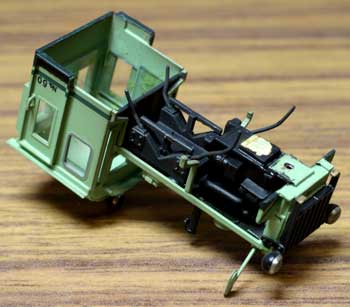 酒井製DL用砂箱セット 好評の「助六の酒井製5tDLシリーズ」に魅力的なアイテムが追加されました。このパーツセットは、お手軽に「全開ボンネット」の楽しさを味わって頂きたい、という企画から生まれたもの。表情豊かなロストワックスを使うことで、簡単に楽しんで頂くことができます。 1.まず、どの号機でもこの作業だけはクリヤーして頂かなくてはいけません。全閉ボンネットの95号機と118号機以外は総て「半開」ボンネットですので、後部の裾部分を糸ノコなどでカットします。カットする部分は、前半分と同じ高さになる位置です。カットしたらヤスリで綺麗に仕上げておきましょう。このボンネットを使って、あとは普通に組んでいきますが、キャブの前妻と、ボンネットの継ぎ目表現の部分には、パーツセットに入っているロスト製枠組みを半田付けします。御存知のように、ボンネットの両袖部分には高低2種類ありますので、使う枠組みを間違えないようにしましょう。 ![]() 2.台枠右側にはブレーキシリンダーを半田付けしますが、前後方向の位置決めは、後輪少し前のボルトがブレーキシリンダーの中心にくるようにすると良いでしょう。このパーツは台座が付いていて、その台座を台枠に引っ掛けるような構造になっているので、半田付けがし安いでしょう。勿論、このブレーキシリンダーは、エアーホースが付いていない(つまりエアーブレーキ化されていない)号機には付きません。また、全開にするにあたり、集電シューが目立ちますので、通常の付け方とは逆に、台枠の下側からビス止めをします。ただし、そのままではシューが動輪に強く当たり過ぎてしまいますので、ヘアピンカーブの部分でカットしておきます。 ![]() 3.定石通りに塗装をしたら、台枠裏側の中央部、台枠を床板に取り付ける突起が集電シューに当たってしまいますので、ショートしないようにエポキシなどでコーティングしておきます。また御覧のようにシューの上の部分も床板に干渉してしまいますので、この部分も少しヤスッておくと良いでしょう。ギヤーフレームにアイドラーギヤーを組み込んだら、アイドラーギヤー軸は下側にテンションを掛けるようにしてエポキシで接着してしまいます。そして、ギヤーフレームから飛び出た部分は、丁寧にカッターで仕上げておきましょう。 ![]() ![]() 4.ボンネットの内部は写真のように黒く塗っておき、エンジンをラジエター後部の下板に接着してから砂箱を接着します。これで出来上がりです。 ![]() 5.さあ、どうでしょうか?この魅力的なパーツ、貴方なら何号機に着せてあげますか? ![]() |