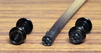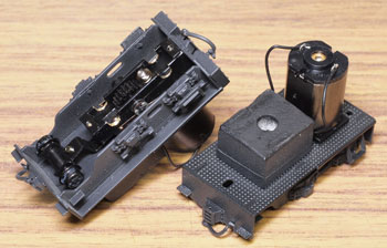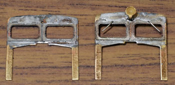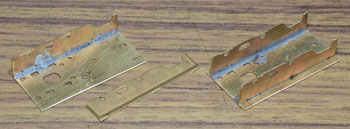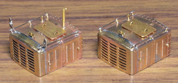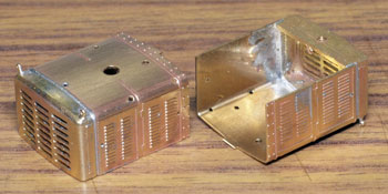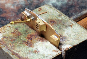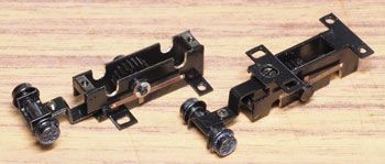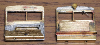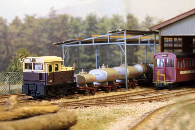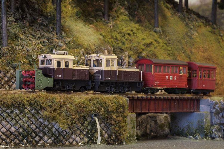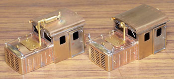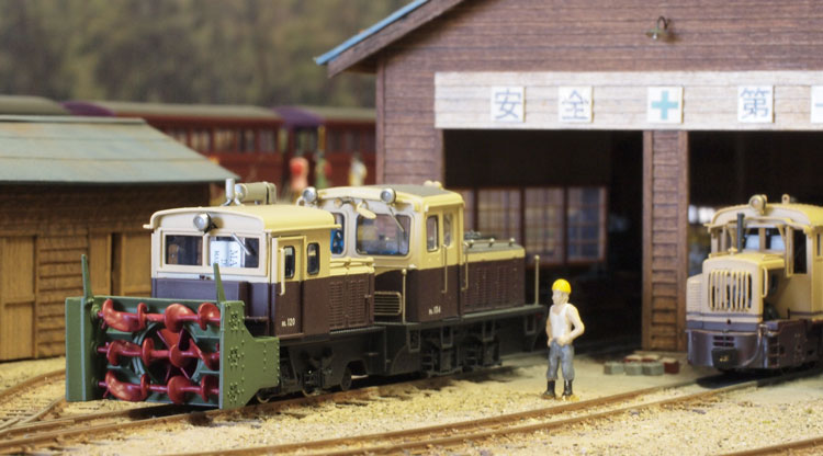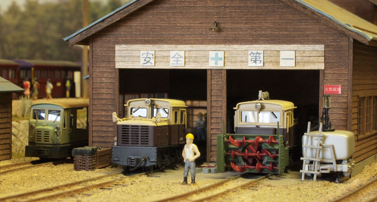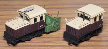 木曽のロータリーDL No.120(冬姿・夏姿) ![]() 整備重量が僅かに5tという数字からは想像できないような逞しさが感じられるこのロータリーDL。 保存されている実車を見るとそれが理解できます。大きなボンネットの中はスカスカで、何故このようなスタイルになったのか不思議ですが、従台車付きの足まわりといい、恐らく大きなロータリーヘッドとの重量バランスゆえのものと考えられます。 ロータリーヘッドを付けると駆動軸に動力が伝わらない、という機能的な理由から、使用される時にはキャブフォワードに押して貰っていた姿は堂々としたもので、全く本務機に引けを取らない貫録すら持ち合わせていました。 また、雪掻き装置を必要としない季節には、あっさりとロータリーヘッドの取り去り、その姿も唯一無二の妙な魅力を備えていました。 今回、当社の創業20周年を記念して模型化されたこの製品。ふたつの顔を持つロータリーDLの魅力を、この組立講座から感じ取って頂ければ幸いです。 第1回 1.まず、ボンネットにラジエターグリルを半田付けします。裾を合わせてその部分でチョンと半田付けをし、次に天井の部分で半田付けをしてから、全体に半田を流していきます。 この際にラジエターキャップやハンドル取付用の穴は塞がってしまうでしょうから、前者はφ0.7のドリルで、後者はφ0.4のドリルで穴を開け直しておきます。 次に細かい部品を付けていきます。ハンドレールノブはハンドレールを穴に差し込んだ状態で半田付けをすると良いでしょう。給油口や夏用の排気管は垂直になるように留意しましょう。夏用のバックミラーアームは「ヘの字」の短い方をボンネット側に差し込み半田付けします。各々の部品を半田付けしたら、それぞれの取付用足をニッパーで可能な限り短くカットしておきます。このバックミラーは丸型と長円型とがありますが、長円型を使用します。なお、冬用の排気管はこの段階では着けません。 ![]() 2.今度はキャブを組み立てます。まず前面の妻板から始めますが(キャブフォワードと同様にキャブ側が前です)、水タンクと窓枠を半田付けしてから、アングル材・ヘッドライトケース・ワイパーを半田付けします。アングル材は妻板の下辺と合うようにしておきます。 ![]() 3.次は後部の妻板です。まず窓枠を半田付けしてから(中央の隙間は0.5mm程度)ワイパー取付用の穴をφ0.4ドリルで開けて半田付けします。次にヘッドライトケースを半田付けして準備完了です。 コの字型の側板と組み合わせますが、これもボンネットの場合と同様に裾の部分でチョンと半田付けしてから天井の部分を半田付けをし、最後にその間に半田を流していきます。 箱状になったら雨樋やドアーなどを半田付けして完了です。 ![]() 第2回 1.下まわりの組立作業に掛かりますが、まずはエンドビームの組み立てから。エンドビームは3種類あります。エンジン側のは共通ですが、キャブ側のは夏用と冬用とで異なります。 エンジン側の場合は写真のように万力に挟んですると落ち着いて作業が出来るでしょう。裏側をツライチに仕上げておきます。 キャブ側の冬用は何もする事がありませんが、夏用は死重を付ける必要があります。左と右のウエイトは違いますので注意して下さい。ボルトが3本ある側が外側を向きます。 エアーホースを取り付ける穴は、エンドビームの穴をガイドにしてφ0.8で開けて下さい。これも裏側をツライチに仕上げておきます。 ![]() 2.台枠の組み立てです。床板に開いたスリットに足を差し込むようにして台枠を半田付けしますが、垂直になるように留意して下さい。 次にさきほどのエンドビームを半田付けしますが、上から見た時にエンドビームの板厚が見える方向で組み合わせて下さい。 ![]() 3.軸受・キャブ下ステップ・台枠ステップを半田付けします。床板のキャブ下にはドアーレールを半田付けします。 床板から下が出来あがったらウエイトを1.4x4mmビスで止めます。写真のようにボンネットを被せてみて、ウエイトとボンネットに取り付けた部品の足とが干渉しないかチェックしておきます。もしも当たっているようでしたら、足をヤスッておきます。 給油口の足は短くカットしても僅かに干渉しますので、写真のようにカッターでウエイトを削いでおきます。 ![]() 4.キャブとボンネットを組み合わせて半田付けします。ボンネットは「ハの字」に開いていませんか?これもボンネットの場合と同様に裾の部分でチョンと半田付けしてから天井の部分を半田付けをし、最後にその間に半田を流していきます。 冬用の排気管をこの段階で着けますが、穴に足を差し込んで屋根に対する足が着いた状態でボンネットに半田付けをします。屋根への足の半田付けは前方のだけで充分でしょう。 ![]() 5.ギヤーフレームはまず角型スペーサーを半田付けしてから小さな凸型板を差し込んで半田付けをして、更に大きな板を半田付けします。ここでの歪みは最終的に走りの悪さに繋がりま