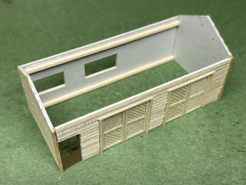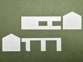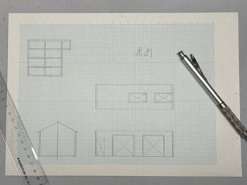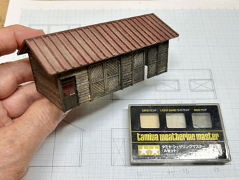 ![]() ![]() まずは特徴ある詰所から作り始めました(^^♪。 以前作ったときの写真を見ながら(こういう時に日本建築の尺貫法は有難いです)図面を描いて、エコーモデルの下見板ボードを切り出すところまでやりました。 前夜のうちに下見板は貼っておいたので、四隅には1.5mm角材を貼って、側板の上下には2mm角材を貼って反らないようにしておき、四角に組み上げました(^^♪。 因みに下見板の貼り付けは木工ボンドで、柱や補強材の接着や四角く組むような作業は木工用瞬間接着剤をというように使い分けています。 これでとりあえず母屋は出来上がったので、屋根の制作に掛かります(^_-)。 ![]() と思ったら倉庫の扉を貼り間違えていたことに気付き、急遽作り直しておきましたが、どうせなので少し開けておき、動きを表現してみました(^_-)。 屋根はボール紙を所定の寸法にカットして、峰の部分に1mm角材を貼ってから、5mmピッチで少し長めにカットした1mm角材を貼っていきました。 総て貼り終えたら長さを揃えてカットします。手前が切り揃えた状態、向こう側がまだカットしていない状態です。 そして母屋に接着。あとは塗装をしていきます(^_-)。 ![]() 木部は薄く溶いたフラットブラックをひたすら何度も何度も何度も(数えていませんが10数回だと思います)塗っては乾かしを繰り返して染めるように塗っていきます。 夕方から塗り始めて、ちょうどオリンピックの卓球男子団体3位決定戦だったので、1セットが終わるごとに塗り重ねて行きました(^_-)-☆。 左端のドアーと同じ程度の色合いになるまで更に塗り重ねていき、屋根には艦底色を塗りました。 朝起きてみたら当然のことですが塗料も完全に乾いていたので、屋根にはタミヤのウェザリングマスターのサンドでニュアンスを付けて完了(*^^)v。 これから屋根上の物干し台を作ります(^^♪。 |