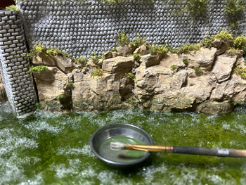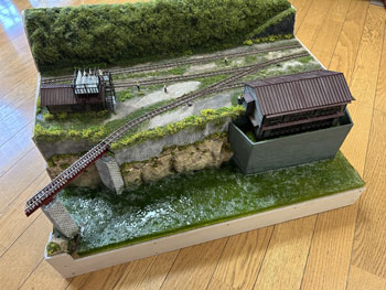 ![]() ここで台枠の3方に貼る化粧板の型どりを新聞紙でやり、必要なベニヤ板を買いに行ってから、いつもの木工屋さんに頼みに行ってきました(^_-)-☆。 ![]() ![]() その間に、もうひと味追加しようと、水際にフラットグリーンの溶液を使ってコケを生やしてみました(^^♪。 ミシンカットを依頼したものが出来上がってきたので、レイアウトボードに木工ボンドと釘で貼り付けました(^_-)-☆。 ![]() 化粧板も完全に固定できたので塗装をして、モデルワーゲンプレートを貼って完成しました(*^^)v。 8月8日から詰所を作り始めたので、約3週間で竣工。 まあ、この程度の大きさ(600x450mm)でしたら標準的な工期でしょう。 ![]() 嬉しくなって、恐らく催し物では置かないような車両を置いてみて、完成記念撮影をしました(^^♪。 ![]() 「男子用小便器と一緒に「便所用換気塔?」も買ったはずなんだけどな〜」と思いながらも、小便器を設置するときには見つからなかった換気塔。 ひょんな事から見つけたので、0.4x0.2の帯金をチョイと付けてダークイエローを吹き付け、当該箇所に設置してみました(^^♪。 |