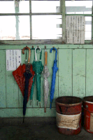 待合室を見てみます。地元の人々が手入れをしているのか、綺麗にされていて気持ちが良いです。座布団や貸し傘、生け花やちょっとした飾りなどが、微笑ましいです。こういう光景を目にすると、廃止せずにいつまでも残って欲しいと願ってしまいます。