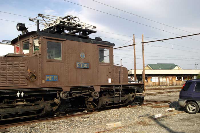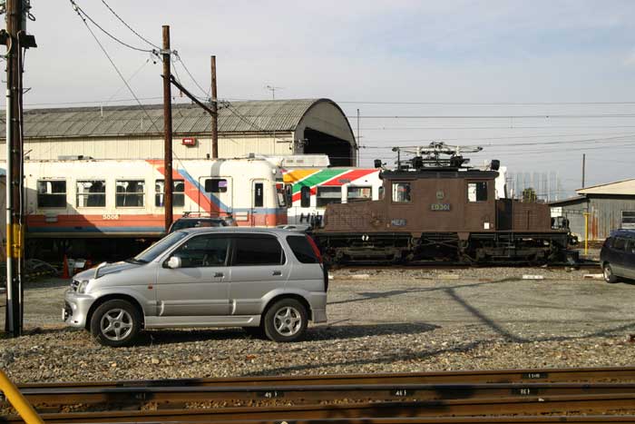 構内に許可を得て入ると、否が応でも目に入るのが、この古豪ウェスティングハウスのELです。正に松電の主と云っても良いでしょう。数年前に紺色から茶色に塗り替えられましたが、そろそろペンキも剥げ始めてきていました。