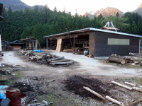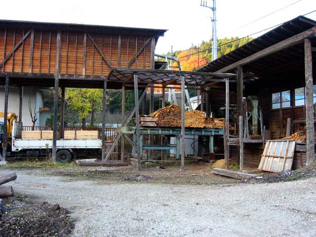 今回取材したのは、天下の険碓氷峠の麓の町・横川にある製材所です。国道を挟んで工場と倉庫が分けられており、その間をフォークリフロで運んでいるようでした。倉庫の奥に御自宅があったので、一応来意を告げて取材させて頂きました。