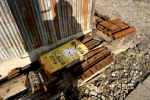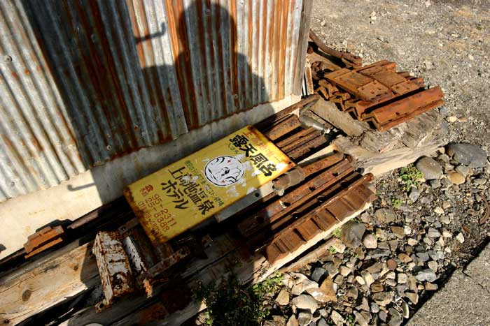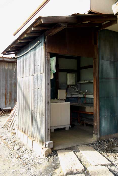 その隣は洗濯場兼風呂場ですが、表側は物置になっています。使い古して放棄してある標識類を置いておくのもイイですが、出来上がったばかりのモノもイイ感じです。