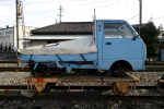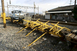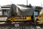 保線車輛オールスターです。トロッコに載せられた軽トラは投光機の発電用です。レール交換は終電後に行いますので、こういったものも必要になるのです。