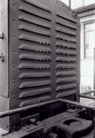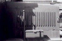 ![]() @AB非公式側の全景と前位のラジエターグリル、後位(逆転機側)のガランを見ます。凸型機関車の場合、どちらが前位なのか判断が難しいのですが、エンジン搭載側が前位です。 アングル材を使っただけのラジエターグリルが素朴ですね。