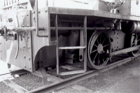 ![]() KL動輪の中心高とジャック軸の中心高が食い違っているので、サイドロッドは段違いになっています。前位にはエアーコンプレッサーが装備されています。「助六の5t」のそれが使えそうですね。また、こちら側の前後には、タイフォンが装備されます。