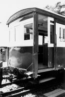 ![]() 沼尻鉄道ボサハ12は同型車13と共に、昭和3・4年に丸山車輛で製造された木造ボギー客車です。もとは栗原鉄道サハ1403・1404を名乗り同鉄道が762mmから1067mmに改軌した際に、不要となった客車を譲り受けたもので、昭和31年2月から使用を開始されています。栗原時代にデッキのクローズ改造がなされていたようです。 僚友13と共に現在では、「猪苗代緑の村」に保存されています。 取材:1995.5.19