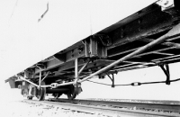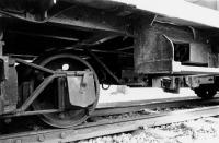 ![]() CDEフレームと台車まわりを見ます。台車のホイールベースは1016mm(他のボギー客車も同様)車輪径は521mmです。下の写真の右端はデッキステップです。 |